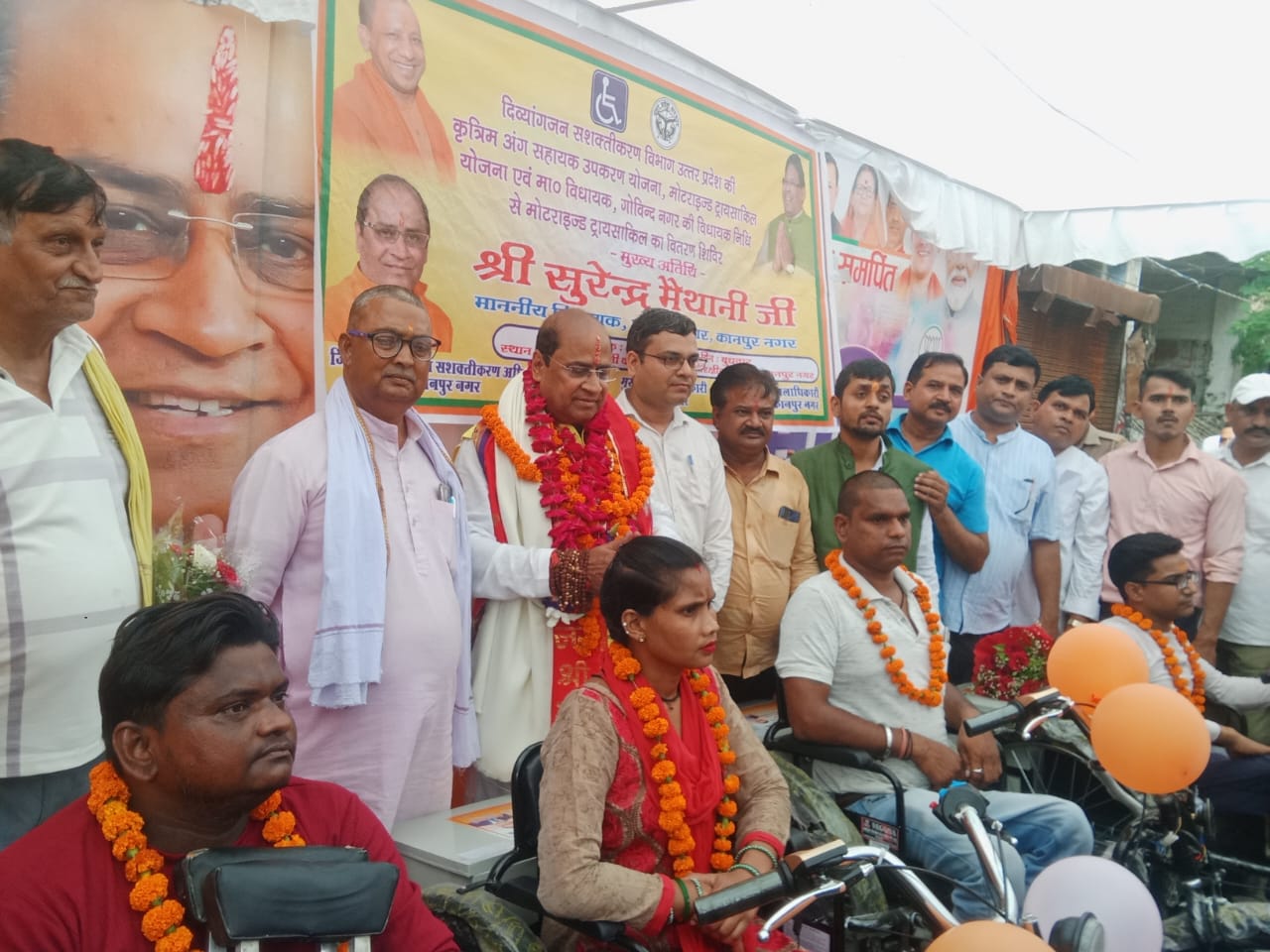 कानपुर | दिव्यांगजन सशक्तिकरण विभाग द्वारा संचालित मोटराइज्ड ट्राइसाइकिल योजना एवं कृत्रिम अंग सहायक उपकरण योजना के अन्तर्गत आज माननीय विधायक गोविंद नगर सुरेंद्र मैथानी द्वारा अपने जन्म दिवस के अवसर पर अपने कार्यालय परिसर, नीर क्षीर चौराहा, काकादेव कानपुर नगर में 5 दिव्यागजनों को मोटराइज्ड ट्राई साईकिल, 18 दिव्यांग बच्चों को ब्रेल किट , 8 दिव्यांग बच्चो को कान की मशीन, 5 दिव्यागजन को बैसाखी का वितरण किया गया।जिला दिव्यांगजन सशक्तिकरण अधिकारी विनय उत्तम ने मुख्य अतिथि सुरेन्द मैथानी का बुके, अंगवस्त्र देकर स्वागत किया|वीरेन्द्र कुमार अध्यक्ष विकलांग एसोसिएशन ने मंच का संचालन किया|