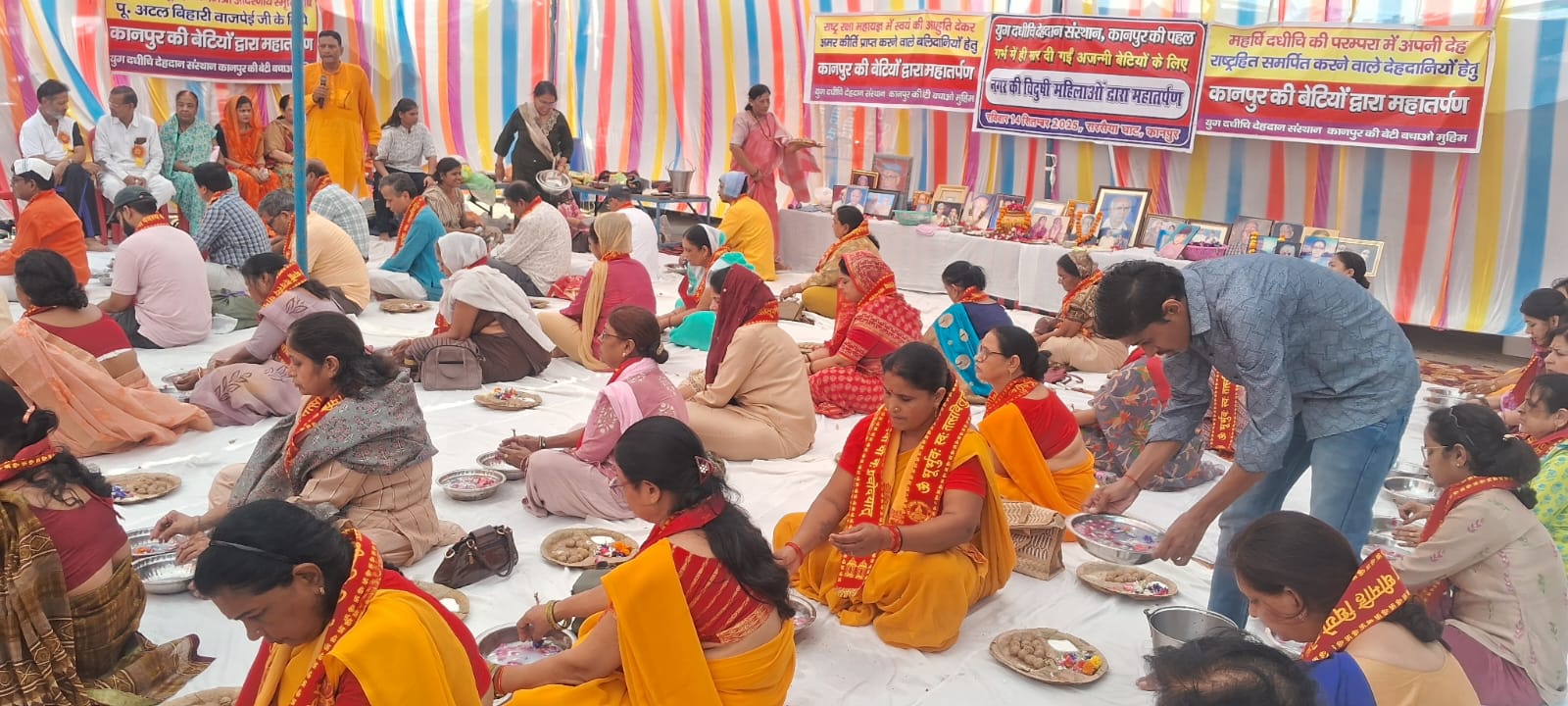 कानपुर-नगर का ऐतिहासिक सरसैया घाट रविवार को एक अद्भुत एवं भावनात्मक आयोजन का साक्षी बना युग दधीचि देहदान संस्थान के नेतृत्व में आयोजित इस कार्यक्रम में 40 महिलाओं ने अजन्मी बेटियों, बलिदानियों व देहदानियों की आत्मा की शांति हेतु तर्पण व पिण्डदान कर समाज में फैली कुरीतियों के परिमार्जन का संदेश दिया इस अनूठी परंपरा की शुरुआत वर्ष 2011 में हुई थी, जो निरंतर जारी है कार्यक्रम का उद्घाटन पूर्व महापौर जगतवीर सिंह दोषी ने किया मुख्य अतिथि सांसद देवेन्द्र सिंह भोले ने इसे उत्तर भारत का अद्वितीय आयोजन बताया दीप पूजन डॉ. उमेश पालीवाल एवं पं. शेषनारायण त्रिवेदी ने सम्पन्न किया मुख्य पूजन प्रयागराज से आईं ले. कर्नल (से.नि.) प्रभा अवस्थी, अटल जी की पौत्री नंदिता मिश्र, शिक्षाविद् डॉ. अलका दीक्षित, राज्य महिला आयोग सदस्य अनीता गुप्ता एवं डॉ. नीलम त्रिवेदी ने किया कलश पूजन में डॉ. सीमा श्रीवास्तव, भावना महाना, रमा महाना एवं पुष्पलता मिश्र शामिल रहीं, जबकि देब पूजन मधुकर महाना, सुधीर महाना, डॉ. आनंद निगम व सुमित मिश्रा ने किया कार्यक्रम संयोजक मनोज सेंगर ने बताया कि “सनातन धर्म में अपने प्रियजन की मृत्यु पर पिण्डदान व तर्पण का विधान है, लेकिन समाज ने गर्भ में ही मारी गई बेटियों के लिए कभी वैदिक पूजन नहीं किया इस भूल को सुधारते हुए हम अजन्मी बेटियों से क्षमा मांगकर उनका पिण्डदान कर रहे हैं पूजन कार्य में मनीषा माहेश्वरी, डॉ. प्रतिभा बंधु, कमलेश उपाध्याय, विमल राय, आम्बका श्रीवास्तव, कामिनी दास, कु. छाया, कु. गौरी, डॉ. अनुपम जैन, रेखा शुक्ला व सरला शुक्ला ने विधि-विधान से सहभागिता की संयोजिका माधवी सेंगर ने सभी अतिथियों को अंगवस्त्र भेंटकर स्वागत किया कार्यक्रम के सफल आयोजन में सुमित मिश्रा गोल्डी, सुरेन्द्र गुप्ता, राजीव महाना, मनोज अग्रवाल, अनिल राय, राव तिवारी, संजय भारती, पियूष दास, अभिषेक, गौतम, दीपक व रिमझिम का विशेष सहयोग रहा कार्यक्रम का समापन भव्य महा आरती के साथ हुआ