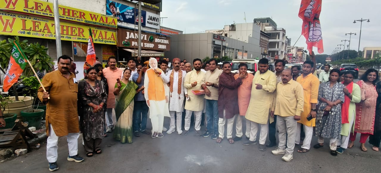 भाजपा कानपुर महानगर उत्तर जिले ने प्रधानमंत्री नरेंद्र मोदी का 75वां जन्म दिवस बड़े उत्साह के साथ मनाया। नवीन मार्केट स्थित भाजपा कार्यालय में आतिशबाजी और मिष्ठान वितरण कार्यक्रम आयोजित हुआ। भाजपा जिला अध्यक्ष अनिल दीक्षित के नेतृत्व में आयोजित इस कार्यक्रम में सैकड़ों कार्यकर्ता मौजूद रहे। इस अवसर पर 75 अनार जलाए गए और 75 किलो मिष्ठान वितरित किया गया। अनिल दीक्षित ने कहा कि “मोदी का जन्म दिवस केवल उत्सव नहीं, बल्कि सेवा और राष्ट्र निर्माण का पर्व है। इस मौके पर अनुराग शर्मा, संतोष शुक्ला, अवधेश सोनकर, अभिनव दीक्षित, सीमा एमबीए, रंजीता पाठक समेत अनेक पदाधिकारी, युवा मोर्चा और महिला मोर्चा के प्रतिनिधि भी मौजूद रहे।