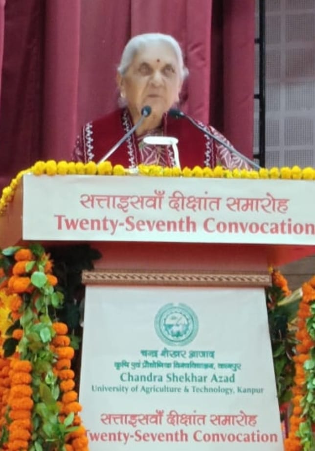 कानपुर-चंद्रशेखर आजाद कृषि एवं प्रौद्योगिकी विवि के दीक्षांत समारोह में कुलाधिपति राज्यपाल आनंदी बेन पटेल जमकर बरसीं। उन्होंने अपने भाषण में कुलपति से लेकर शिक्षकों वैज्ञानिकों को खूब खरी खोटी सुनाई कहा विश्वविद्यालय की रैंक नीचे गिर रही है पहले आईआईआरएफ रैंकिंग 30 थी, अब 38 हो गई इसका मतलब विश्वविद्यालय ठीक से काम नहीं कर रहा है हॉस्टल के अंदर बाथरूम, टॉयलेट में सीवर का पानी जा रहा है बच्चें पर रहने में मजबूर है भवन जर्जर है। भवन में घास उगी है गेस्ट फैकल्टी के सहारे कक्षाएं चल रही हैं स्विमिंग पूल बंद है लग रहा है सब फिट हो चुके हैं कोई एक्स्ट्रा एक्टिविटी नहीं है किसी खेल में प्रतिभाग नहीं किया कई विभाग ऐसे हैं, जिनमें 10 से कम बच्चे हैं। सबसे खराब विभाग डेयरी विभाग है। 500 गाय हैं, लेकिन दुग्ध उत्पादन नहीं होता। शिक्षक और वैज्ञानिकों से कहा कि ऑर्गेनिक खेती पर कितना काम किया है। इसका ब्यौरा दें। दो साल पहले ऑर्गेनिक खेती कितनी होती थी और अब कितनी हो रही है। पांच साल में किसानों को कितना जागरूक किय सिंचाई पर कितना काम किया है, उसका ब्यौरा दें उन्होंने मंत्री से कहा कि नई पीढ़ी गेहूं कम खा रही है, लेकिन फिर भी गेहूं के उत्पादन में हम आगे हैं। छात्रों से कहा कि जिनके पास खेती है, अगर वह ऑर्गेनिक खेती नहीं करेंगे, तो उन्हें आने वाले दीक्षांत में मेडल नहीं दिया जाएगा ऐसी पढ़ाई का क्या फायदा, जिसका इस्तेमाल खुद ही नहीं किया