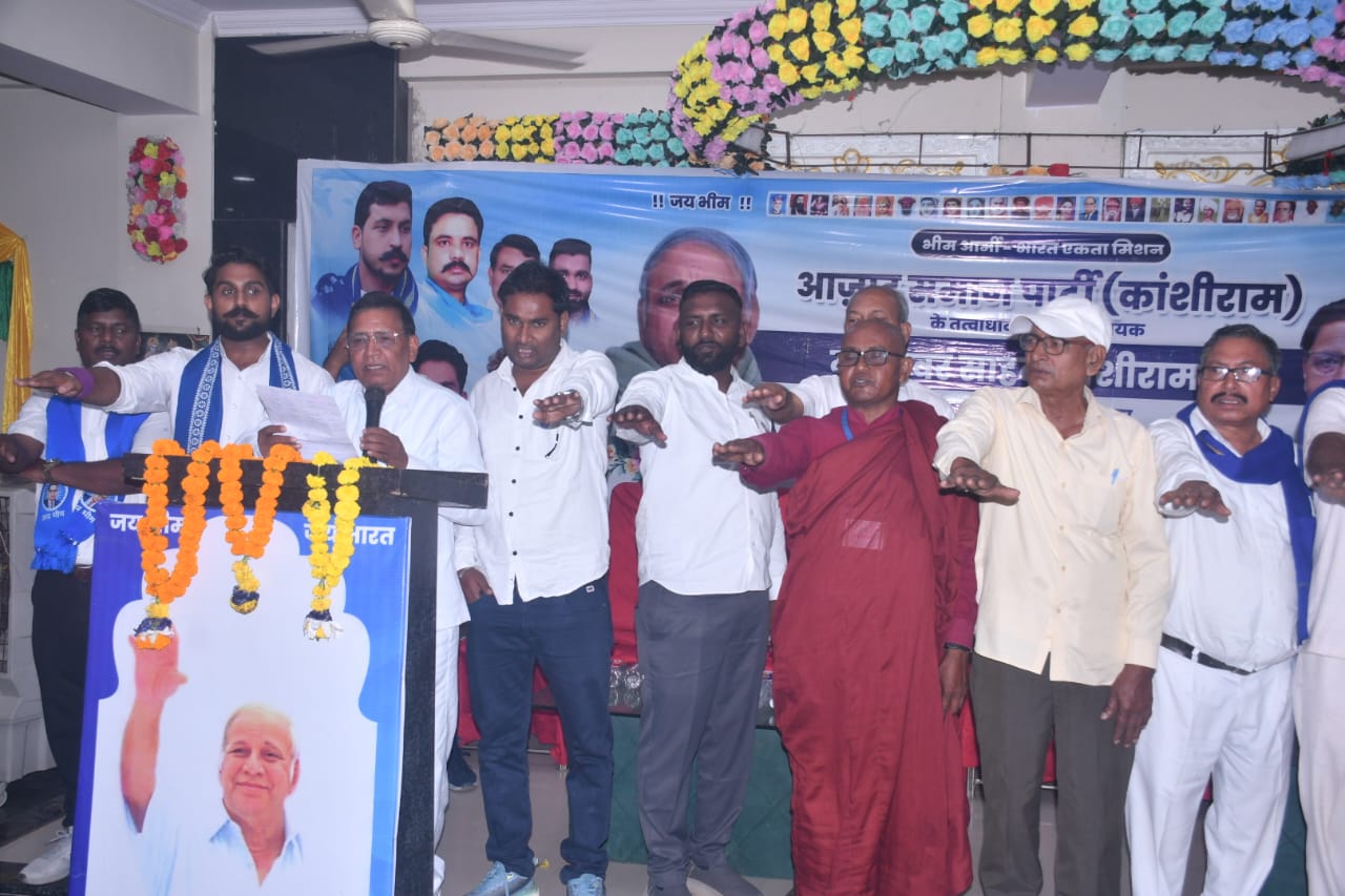 कानपुर, आज़ाद समाज पार्टी (कांशीराम) के राष्ट्रीय अध्यक्ष,भीम आर्मी संस्थापक व लोकप्रिय नगीना लोकसभा सांसद एड. चन्द्रशेखर आज़ाद के निर्देशानुसार एवं प्रदेश अध्यक्ष (उ.प्र.)सुनील चित्तौड़ के आदेशानुसार आज बहुजन समाज के नायक मान्यवर साहब कांशीराम के परिनिर्वाण दिवस पर कानपुर में विशाल श्रद्धांजलि सभा व संकल्प दिवस के रूप में मनाया गया, कार्यक्रम पी. एस. पैलेस, जरौली, मे संपन्न हुआ।कार्यक्रम के मुख्य अतिथि राम गोपाल (प्रदेश संगठन मंत्री व मुख्य कानपुर मंडल प्रभारी व विशिष्ठ अतिथि कौशल वाल्मीकि प्रदेश उपाध्यक्ष व कानपुर मंडल प्रभारी भीम आर्मी के साथ तुलसीराम प्रदेश सचिव,मो. जावेद वारसी प्रदेश कार्यकारिणी सदस्य व मंडल प्रभारी भाईचारा कमेटी, गंगाराम पाल कानपुर मंडल संयोजक – भाईचारा कमेटी मूलचंद्र जिला संरक्षक भीम आर्मी आदि अतिथियों एवं वक्ताओं ने मान्यवर द्वारा समाज के उत्थान हेतु किए गए आजीवन संघर्षों को याद किया, कार्यक्रम में वक्ताओं ने कहा कि मान्यवर कांशीराम जी ने समाज के वंचित, शोषित एवं पिछड़े वर्गों को एकजुट कर सामाजिक-राजनीतिक चेतना जगाने का ऐतिहासिक कार्य किया ।मुख्य अतिथि के द्वारा सभा में उपस्तिथि 1000 से भी ज्यादा लोगो ने चन्द्रशेखर आज़ाद के नेत्रित्व में निम्नलिखित समस्याओं को दूर करने हेतु संकल्प लिया हमें उच्च स्तर की शिक्षा मिलनी चाहिए सरकार के सभी विभागों में आबादी के अनुसार हिस्सेदारी (आरक्षण) मिलना चाहिए।निजीकरण किए गए विभागों में हिस्सेदारी (आरक्षण) व्यवस्था तत्काल लागू होनी चाहिए ।बढ़ते हुए अन्याय अत्याचार को बंद करना चाहिए ।हमारे महापुरुषों की प्रतिमाओं एवं धार्मिक स्थलों को तोड़ना तत्काल बंद करना चाहिए ।
