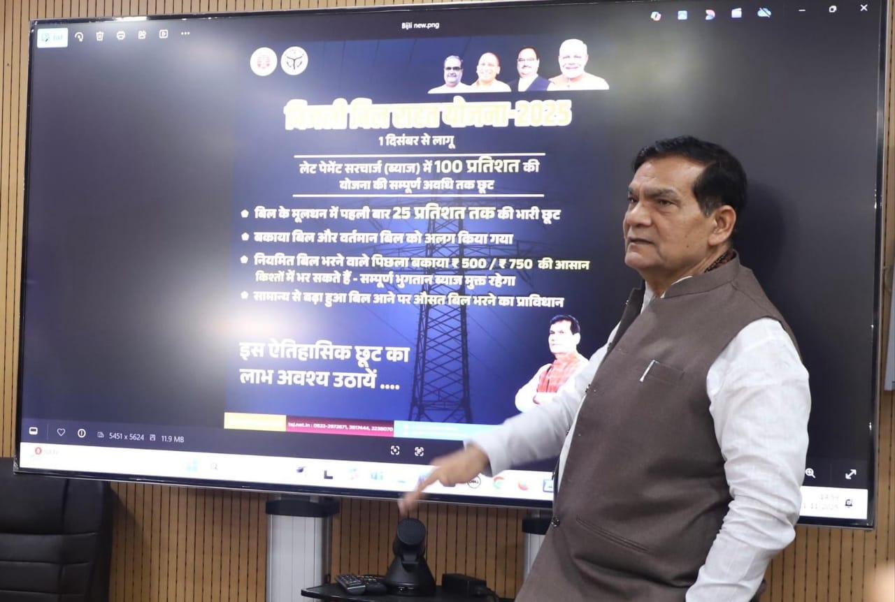 लखनऊ/कानपुर-उत्तर प्रदेश सरकार के नगर विकास एवं ऊर्जा मंत्री ए.के. शर्मा ने प्रदेश के करोड़ों बिजली उपभोक्ताओं के हित में एक ऐतिहासिक निर्णय लेते हुए “बिजली बिल राहत योजना 2025” लागू करने की घोषणा की है इस योजना के अंतर्गत नेवरपेड और लॉन्ग अनपेड उपभोक्ताओं को सुविधा मिलेगी यह बात प्रदेश के नगर विकास एवं ऊर्जा मंत्री ए.के. शर्मा ने संगम सभागार में प्रेस वार्ता कर बताया इस दौरान उनके साथ अपर मुख्य सचिव नरेंद्र भूषण, चेयरमैन आशीष गोयल एवं एमडी पंकज कुमार भी मौजूद रहे विद्युत बिल राहत योजना 2025 के अंतर्गत बकाया धनराशि को एकमुश्त जमा करने पर सरचार्ज में 100 प्रतिशत एवं मूलधन में 25 प्रतिशत तक छूट देने का ऐतिहासिक निर्णय लिया गया है ऊर्जा मंत्री ने इस योजना को जनता के लिए “सरकार का उपहार और जनसहभागिता से जुड़ी अभूतपूर्व पहल” बताया है उन्होंने कहा कि प्रदेश सरकार का उद्देश्य है कि कोई भी उपभोक्ता बिजली बिल के बोझ तले दबा न रहे और साथ ही राज्य की बिजली वितरण व्यवस्था आर्थिक रूप से सुदृढ़ बने इस योजना से एक ओर जहां सरकारी खजाने में भारी राजस्व की वृद्धि होगी, वहीं दूसरी ओर घरेलू व वाणिज्यिक उपभोक्ताओं को बड़ी आर्थिक राहत प्राप्त होगी, ऊर्जा मंत्री ने बताया कि योजना के अंतर्गत यदि कोई उपभोक्ता अपना बिजली बिल एकमुश्त जमा करता है, तो उसे सरचार्ज में 100 प्रतिशत के साथ-साथ बकाए के मूलधन में 25 प्रतिशत छूट मिलेगी यह छूट तीन चरणों में दी जाएगी प्रथम चरण (1 दिसंबर 2025 से 31 दिसंबर 2025 तक) पंजीकरण कराने पर 25 प्रतिशत, द्वितीय चरण (1 जनवरी 2026 से 31 जनवरी 2026 तक) में 20 प्रतिशत तथा तृतीय चरण (1 फरवरी 2026 से 28 फरवरी 2026 तक) पंजीकरण कराने में 15 प्रतिशत की छूट दी जाएगी मंत्री श्री शर्मा ने कहा, “जो उपभोक्ता पहले पंजीकरण कर भुगतान करेंगे, उन्हें अधिक लाभ मिलेगा। इसलिए प्रदेश के नागरिकों से अपील है कि वे योजना के प्रथम चरण में ही भाग लें यह योजना घरेलू उपभोक्ताओं (2 किलोवाट तक) और वाणिज्यिक उपभोक्ताओं (1 किलोवाट तक) दोनों के लिए लागू होगी।इतना ही नहीं, बिजली चोरी से संबंधित प्रकरणों में राजस्व निर्धारण धनराशि पर भी छूट देने का प्रावधान किया गया है इससे उन उपभोक्ताओं को भी राहत मिलेगी जो अनजाने में तकनीकी अथवा मीटर संबंधी त्रुटियों के कारण विवादों में फंसे हुए थे ऊर्जा मंत्री ने कहा कि सरकार ने गरीब और मध्यम वर्गीय उपभोक्ताओं की सुविधा को ध्यान में रखते हुए मासिक किस्तों में भुगतान की सुविधा भी दी है। इससे वे उपभोक्ता, जो एकमुश्त भुगतान करने में असमर्थ हैं, वे भी योजना का लाभ उठाकर अपने बकाया बिलों का निस्तारण कर सकते हैं यह कदम प्रदेश के लाखों छोटे उपभोक्ताओं को आर्थिक सशक्तिकरण और आत्मनिर्भरता की दिशा में आगे बढ़ाने वाला होगा, ऊर