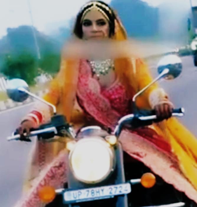हाईवे पर ‘बुलेट वाली दुल्हन’ का खतरनाक स्टंट—ट्रैफिक पुलिस की लापरवाही उजागर