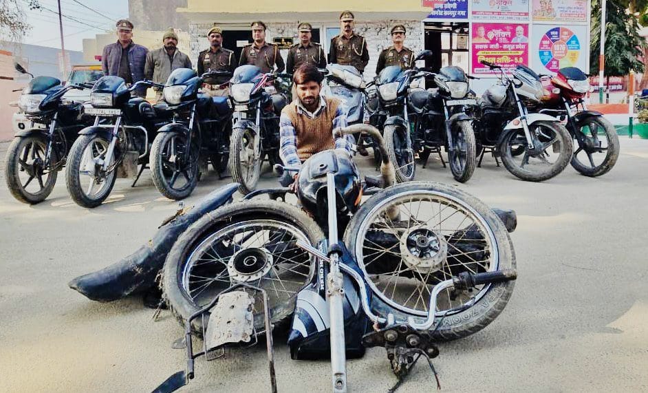 पुलिस ने किया शातिर चोरों को गिरफ्तार, चोरी की 08 मोटर साइकिल और 01 स्कूटी बरामद