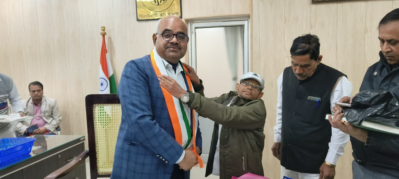 दिव्यांग जागरूकता सेवा समिति उत्तर प्रदेश, कानपुर महानगर के अध्यक्ष आफताब आलम के नेतृत्व में समिति के पदाधिकारियों एवं सदस्यों ने जिलाधिकारी जितेंद्र प्रताप सिंह (कानपुर नगर) से शिष्टाचार भेंट कर उन्हें शुभकामनाएं एवं बधाई दी। इस अवसर पर समिति की ओर से जिलाधिकारी को तिरंगा पटका एवं मेडल पहनाकर सम्मानित किया गया।अध्यक्ष आफताब आलम ने कहा कि जिलाधिकारी के कुशल नेतृत्व में जनहित से जुड़ी योजनाओं को मजबूती मिल रही है। उन्होंने विशेष रूप से दिव्यांगजनों के कल्याण, अधिकारों की रक्षा और उन्हें सरकारी योजनाओं का पूरा लाभ दिलाने में जिला प्रशासन की भूमिका की सराहना की। उन्होंने आशा व्यक्त की कि भविष्य में भी जिला प्रशासन का सहयोग दिव्यांगजनों के लिए संचालित कार्यक्रमों में मिलता रहेगा।