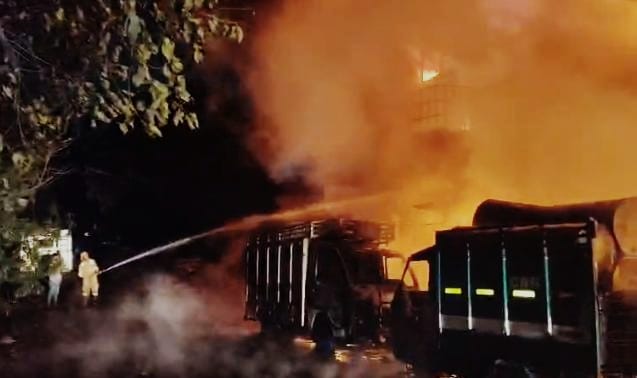 धू-धू कर जली विनायक ट्रेडर्स, धुएं के गुबार से ढका आसमान, सीएफओ के नेतृत्व में कई फायर स्टेशनों की गाड़ियों ने पाया काबू, टला बड़ा हादसा
