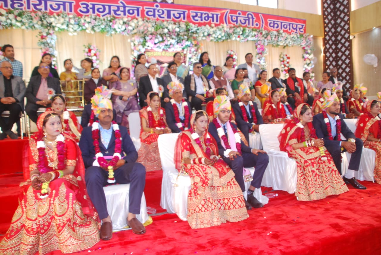कानपुर। शहनाइयों की मधुर गूंज, वैदिक मंत्रोच्चार और मंगल गीतों के बीच श्री महाराजा अग्रसेन वंशज सभा के तत्वावधान में आयोजित 29वां सामूहिक विवाह समारोह रविवार को भव्य और भावनात्मक माहौल में संपन्न हुआ। बृजेंद्र स्वरूप पार्क स्थित नवनिर्मित मंगल भवन में आयोजित इस समारोह में 11 जोड़ों ने एक-दूसरे का हाथ थामकर सात फेरे लिए और जीवन भर साथ निभाने का संकल्प लिया। समारोह की शुरुआत विधिवत वैदिक रीति-रिवाजों के साथ हुई। पंडितों द्वारा मंत्रोच्चार के बीच दूल्हा-दुल्हन ने अग्नि को साक्षी मानकर विवाह संस्कार पूर्ण किया। शुभ गीतों और पारंपरिक संगीत के बीच जयमाला रस्म संपन्न हुई, जिसके बाद उपस्थित जनसमूह ने पुष्पवर्षा कर नवविवाहित जोड़ों को आशीर्वाद दिया। पूरा परिसर उल्लास, श्रद्धा और खुशियों से सराबोर नजर आया।इस सामूहिक विवाह समारोह में शहर के अनेक गणमान्य नागरिक और समाजसेवी नवदंपतियों को आशीर्वाद देने पहुंचे। कार्यक्रम में महापौर प्रमिला पांडे, एमएचपीएल निदेशक प्रणीत अग्रवाल, जागरण प्रकाशन निदेशक महेंद्र मोहन, योगेश अग्रवाल, विशाल अग्रवाल, विजय पांडे एवं मनोज अग्रवाल सहित अन्य विशिष्ट अतिथियों ने नवदंपतियों को सुखी, समृद्ध और सफल दांपत्य जीवन के लिए शुभकामनाएं दीं। अतिथियों ने महाराजा अग्रसेन वंशज सभा द्वारा किए जा रहे इस सामाजिक कार्य की सराहना करते हुए इसे समाज के लिए प्रेरणादायक बताया।