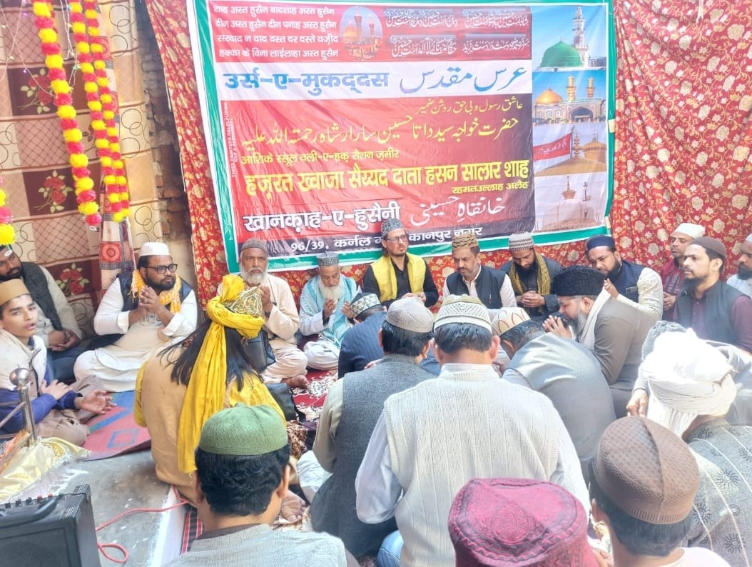 कानपुर। हज़रत ख्वाजा सैय्यद दाता हसन सालार शाह (रह० अलै०) का 53वां सालाना उर्स मुबारक परंपरागत श्रद्धा, सद्भाव, भाईचारा और अमन के वातावरण में खानकाहे हुसैनी, कर्नलगंज ऊँची सड़क पर मनाया गया। उर्स के मौके पर हुज़ूर हज़रत मोहम्मद मुस्तफा (स०अ०व०) की सुन्नतों पर अमल करने, मुल्क से मोहब्बत रखने, इंसानियत को ज़िंदा रखने, सामाजिक बुराइयों को दूर करने और देश की खुशहाली के लिए कार्य करने का संकल्प लिया गया।53वें उर्स की शुरुआत 13 फरवरी को नमाज़-ए-ईशा के बाद जश्न-ए-ईद मिलादुन्नबी के साथ हुई। इस अवसर पर उलेमा-ए-दीन ने पैग़म्बर-ए-इस्लाम की सुन्नतों पर चलने और आपसी भाईचारे को मज़बूत करने का पैगाम दिया। उर्स के दूसरे दिन 14 फरवरी को नमाज़-ए-मगरिब के बाद फ़ातिहा अव्वल हज़रत अली करम अल्लाहु वज्हू हुई, इसके पश्चात मजार पर इत्र, चंदन और गुलाब से गुलपोशी कर गागर-चादर पेश की गई। इसके बाद महफ़िल-ए-शमा (कव्वाली) का आयोजन हुआ, जिसमें सूफियाना कलाम से माहौल रूहानी हो उठा।