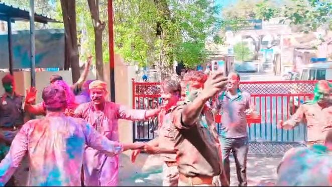 पुलिस लाइन में कपड़ा फाड़ होली, अधिकारियों संग झूमे पुलिसकर्मी