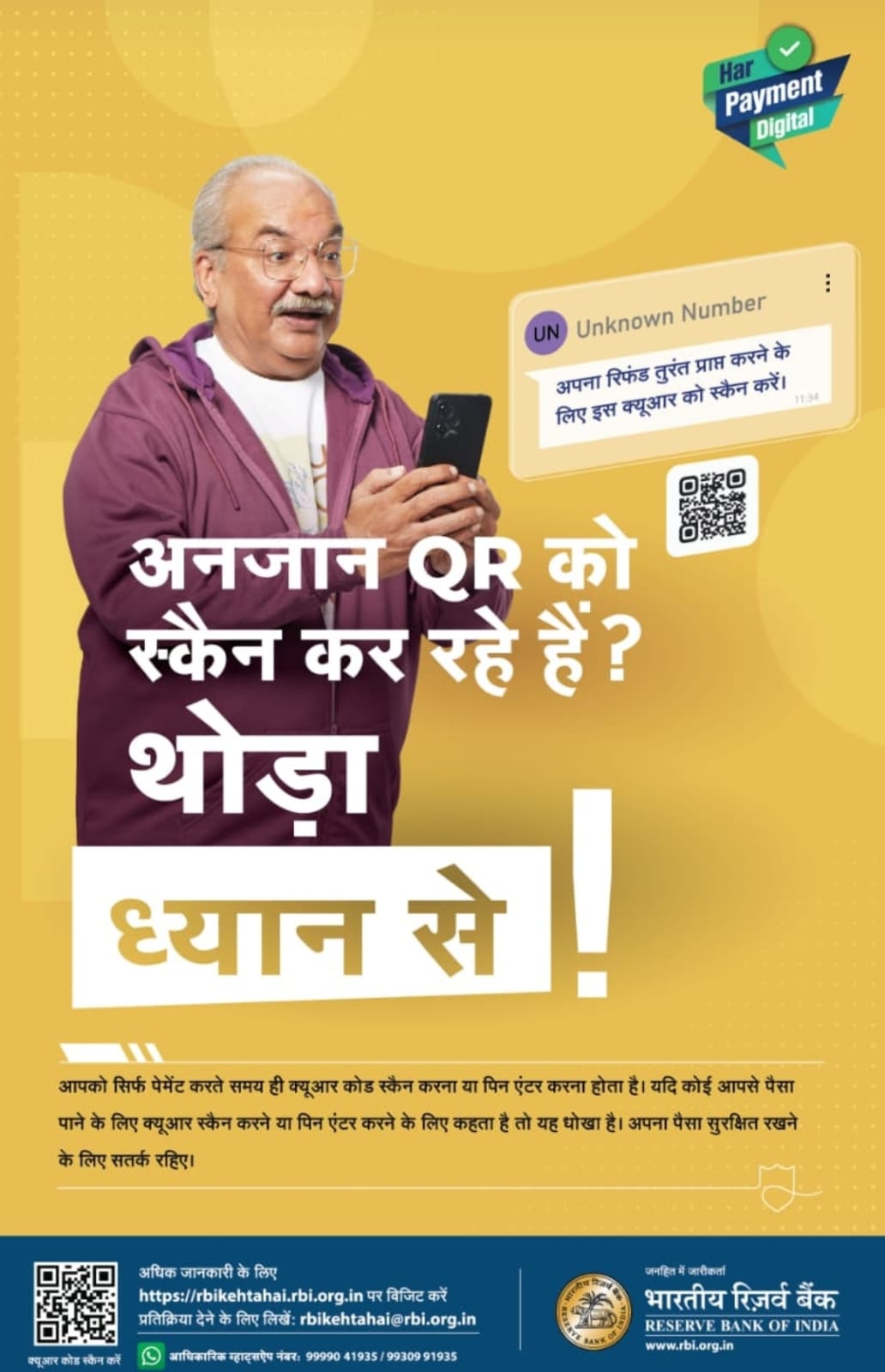 अभियान के दौरान बैंक शाखाओं, बाजारों, शिक्षण संस्थानों और अन्य सार्वजनिक स्थलों पर जागरूकता कार्यक्रम, गोष्ठियां और जनसंपर्क गतिविधियां आयोजित की जाएंगी। इन कार्यक्रमों के माध्यम से लोगों को डिजिटल भुगतान के सुरक्षित तरीकों के बारे में जानकारी दी जाएगी और उन्हें बताया जाएगा कि भुगतान प्राप्त करने के लिए किसी भी व्यक्ति को क्यूआर कोड स्कैन करने या पिन दर्ज करने की आवश्यकता नहीं होती।