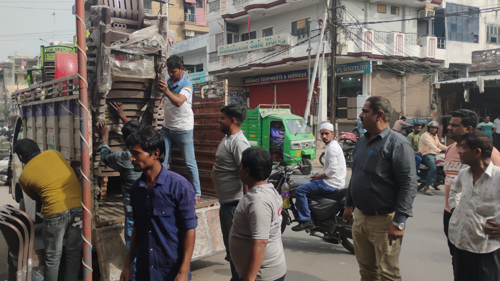 नगर निगम की टीम ने कार्रवाई के दौरान कई अवैध ढांचों को हटाते हुए बड़ी मात्रा में सामान जब्त किया। अभियान में 5 ठेले, 2 गुमटियां और 3 टीन शेड हटाए गए। इसके अलावा दुकानों के बाहर रखे गए फर्नीचर पर भी कार्रवाई की गई, जिसमें 13 सोफा सेट, 4 काउंटर और लगभग 400 कुर्सी-मेज जब्त की गईं। वहीं अवैध प्रचार सामग्री पर भी सख्ती दिखाते हुए 35 बैनर और 3 अवैध होर्डिंग उतरवाए गए।