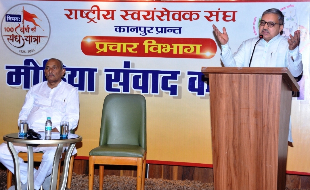 कानपुर। राष्ट्रीय स्वयंसेवक संघ कानपुर प्रांत द्वारा शुक्रवार को मीडिया संवाद कार्यक्रम का आयोजन किया गया। इस अवसर पर अखिल भारतीय सह प्रचार प्रमुख नरेन्द्र ठाकुर ने प्रेस एवं मीडिया प्रतिनिधियों से संवाद करते हुए संघ की विचारधारा, कार्यशैली और आगामी योजनाओं पर विस्तार से प्रकाश डाला।