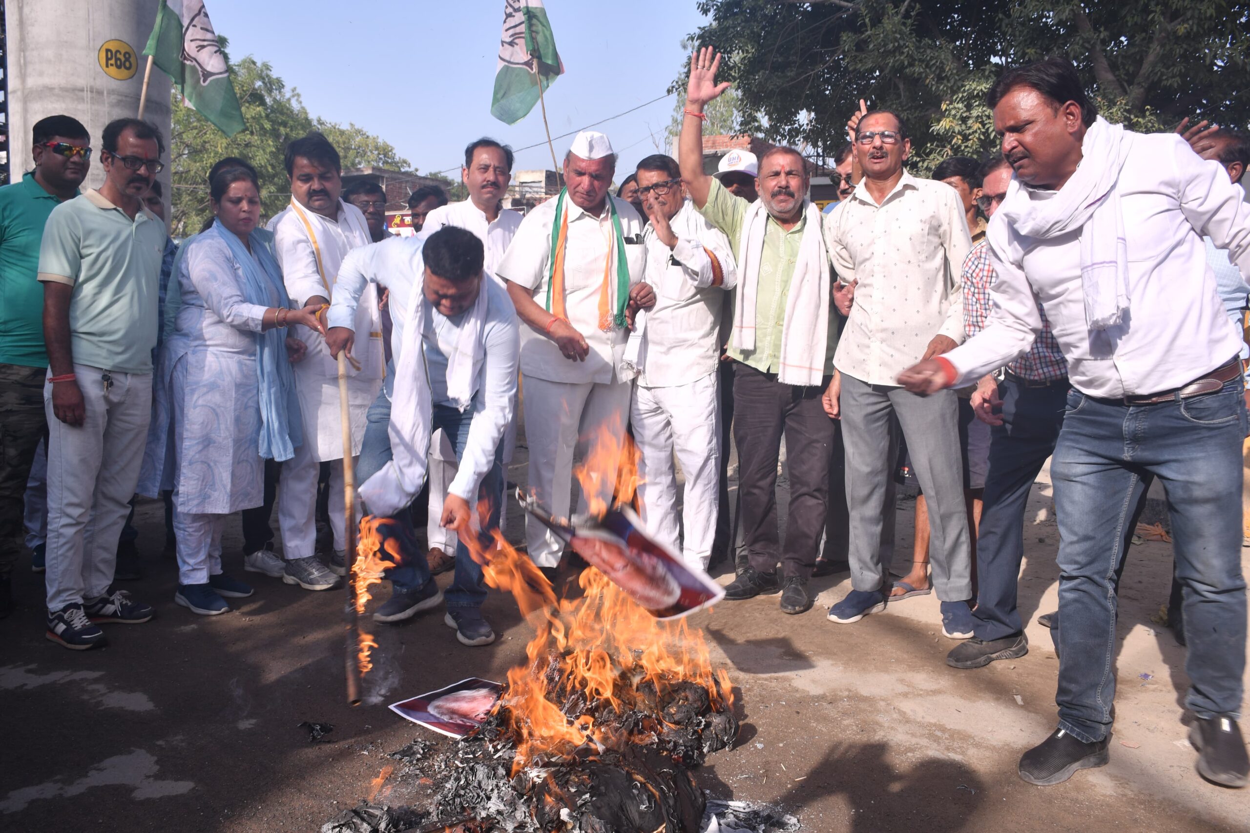 कानपुर । अमेरिका के पूर्व राष्ट्रपति Donald Trump द्वारा भारत और भारतीयों को लेकर दिए गए कथित आपत्तिजनक बयान के विरोध में आज कानपुर महानगर कांग्रेस ने जोरदार प्रदर्शन किया। महानगर अध्यक्ष Pawan Gupta के नेतृत्व में कार्यकर्ताओं ने सीटीआई चौराहे पर एकत्र होकर ट्रंप का पुतला दहन किया और आक्रोश व्यक्त किया।प्रदर्शन के दौरान कांग्रेस कार्यकर्ताओं ने ट्रंप के पुतले पर जूते मारते हुए नारेबाजी की। इस मौके पर महानगर अध्यक्ष पवन गुप्ता ने कहा कि भारत जैसे महान देश और उसके नागरिकों के लिए इस तरह की भाषा किसी भी स्तर पर स्वीकार्य नहीं है। उन्होंने इसे देश का अपमान बताते हुए कड़ी निंदा की।साथ ही उन्होंने केंद्र सरकार पर निशाना साधते हुए कहा कि Narendra Modi को इस मुद्दे पर चुप्पी तोड़नी चाहिए और देश की गरिमा के अनुरूप कड़ा जवाब देना चाहिए।इस दौरान बड़ी संख्या में कांग्रेस कार्यकर्ता मौजूद रहे, जिन्होंने एक स्वर में देश के सम्मान की रक्षा के लिए आवाज बुलंद की। प्रमुख रूप से प्रतिभा अटल पाल, हरप्रकाश अग्निहोत्री, राकेश साहू, आनंद शुक्ला, शांतनु दीक्षित, मनोज मेहरोत्रा, सुनीता पाल, मोनू पाल, रत्नेश गुप्ता, विनोद अवस्थी, सोनू मारवाह, अजय सिंह, सुनील अग्रवाल, आशीष, छोटू, विक्रांत, विशाल, नितिन, अभिषेक दीक्षित, पुष्कर दीक्षित, सक्षम तिवारी, ऋषि कुमार, मो. उस्मान, अविनाश सविता, शोभित तिवारी, रेखा कश्यप, विनोद सिंह, राकेश गुप्ता समेत अन्य लोग मौजूद रहे।