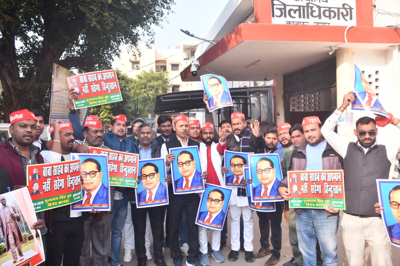कानपुर, कानपुर समाजवादी पार्टी के फ्रंटल सपा युवजन सभा अध्यक्ष अर्पित त्रिवेदी यूथ बिग्रेड अध्यक्ष आदाब आलम लोहिया वाहिनी अध्यक्ष दीपक खोटे अल्पसंख्यक सभा अध्यक्ष अरमान खान के नेतृत्व में जिलाधिकारी कार्यालय के बाहर जमकर देश के गृहमंत्री अमित शाह के खिलाफ प्रदर्शन जोरदार नारेबाजी प्रदर्शन के दौरान मुलायम सिंह यूथ ब्रिगेड के अध्यक्ष शादाब आलम ने गृह मंत्री का चित्र भी फाड़ दिया। जिलाधिकारी के माध्यम से राष्ट्रपति महोदया को ज्ञापन सोपा गया ज्ञापन के दौरान कहां की लोकतंत्र के मंदिर संसद भवन में देश के गृहमंत्री अमित शाह द्वारा संविधान निर्माता बाबा साहब डा० भीमराव अम्बेडकर के प्रति अपमानजनक बयान दिया गया। देश के गृहमंत्री द्वारा संविधान और संविधान निर्माता के प्रति ये व्यवहार अशोभनीय है। संविधान देश की आत्मा है और सम्मानित जनता शरीर। डा० अम्बेडकर पीड़ित वंचित शोषित वर्ग भगवान की तरह की पूजा करता है।बाबा साहब के अपमान से पीडीए वर्ग बुरी तरह से आहत है और देश के गृहमंत्री के बयान से घोर निराशा और दुख में है। अर्पित त्रिवेदी ने कहा कि हम सभी आपसे यह मांग करते है कि गृहमंत्री अपने उस बयान के लिए देश की जनता से मांफी मांगे या इस्तीफा दें। यदि वह मांफी या इस्तीफा के लिए सहमत नही होते है तो आप उनको गृहमंत्री के पद से बर्खास्त करने की कृपा करे। ज्ञापन के दौरान अनुराग पांडे सनी सागर विनोद यादव कासीद गौतम निगम सत्यम ठाकुर संजय यादव यीशु यादव नंदकिशोर नवीन जय सुकांत शर्मा आदि लोग रहे।