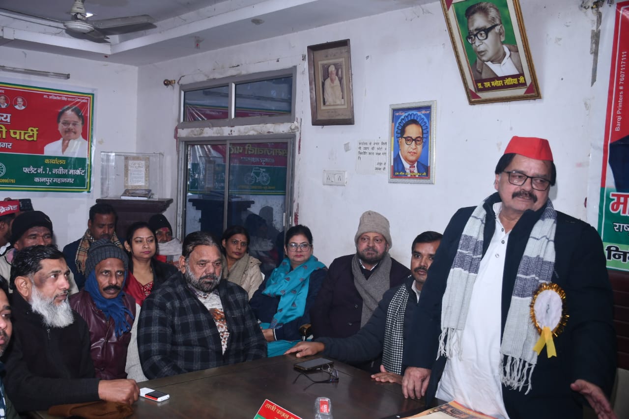 कानपुर समाजवादी पार्टी कानपुर महानगर पदाधिकारियों कार्य समिति के सदस्यों विधायकों फ्रंटल संगठनों के अध्यक्षों विधानसभा अध्यक्षों पीडीए मिशन की युवा टीम सपा प्रदेश राष्ट्रीय संगठऩो के आमंत्रित सदस्यों की मासिक बैठक सपा महानगर अध्यक्ष हाजी फजल महमूद की अध्यक्षता में दिन में 3:00 बजे सपा कार्यालय 7 नवीन मार्केट में आरंभ हुई!मासिक बैठक का संचालन महानगर के वरिष्ठ उपाध्यक्ष शैलेंद्र यादव मिन्टू ने किया!बैठक को संबोधित करते हुए महानगर अध्यक्ष हाजी फजल महमूद ने कहा कि बिजली के निजीकरण करने से उपभोक्ताओं पर बोझ बढ़ेगा महंगी बिजली से जनता परेशान हो जाएगी और मुनाफा कंपनियां उठाएंगी महानगर अध्यक्ष हाजी फजल महमूद ने आगे कहा कि महानगर में पीने के पानी की समस्या बढ़ रही है दक्षिण क्षेत्र में ज्यादा किल्लत है दूसरी ओर जल संस्थान मानक के अनुसार जल आपूर्ति नहीं कर पा रहा है दूसरी ओर दूषित जल से बीमारियां बढ़ रही है जिससे जनता पेट हृदय रोग से परेशान है
