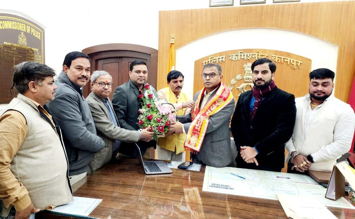 कानपुर उद्योग व्यापार मंडल जिलाध्यक्ष आशीष सचान ने नेतृत्व में प्रतिनिधि मण्डल कानपुर कमिश्नर अखिल कुमार से मिला। इस मौके पर जिलाध्यक्ष आशीष सचान ने बताया कि नव वर्ष पर कानपुर उद्योग व्यापार मंडल ने कानपुर कमिश्नर अखिल कुमार का भव्य स्वागत बुके भेंटकर करते हुए उनका आभार व्यक्त किया। श्री सचान ने कहा कि शहर की पुलिस ने बीते वर्ष में सराहनीय कार्य किया है। कानपुर पुलिस बिना थके लोगों की सुरक्षा के लिए हमेशा समर्पित रहती है। बीते वर्ष में कानपुर कमिश्नर के द्वारा चलाए गए अपराध मुक्त कानपुर की मुहिम का ही नतीजा है कि इतने बड़े महानगर में अपराधियों का मनोबल टूटा है। और व्यापारी अपने आप को सुरक्षित महसूस करते हुए व्यापार कर पा रहे हैं। उन्होंने कहा कि कानपुर कमिश्नरेट पुलिस के द्वारा बीते वर्ष में सक्रियता और कड़ाई के कारण ही आज कानपुर अपराध मुक्त महानगर बनने की दिशा में अग्रसर है। और पुलिस का भी मनोबल व्यापारियों ने हर समय बढ़ाया है। कानपुर कमिश्नर अखिल कुमार ने जिलाध्यक्ष आशीष सचान का आभार व्यक्त करते हुए भरोसा दिलाया कि व्यापारी समाज निडर होकर अपना व्यापार संचालित करें तथा पुलिस की प्राथमिकता व्यापारियों की सुरक्षा हे। किसी भी व्यापारी साथी को कोई भी परेशानी हो तो वो सीधे मुझसे आकर मिल सकते हे। कोई आपको परेशान करता हे तो मुझे बताए उसका निस्तारण तुरंत किया जाएगा। एवं नगर के व्यापारियों के द्वारा दिए जा रहे सहयोग के लिए भी व्यापारियों को धन्यवाद कहा। जिलाध्यक्ष आशीष सचान ने कहा कि बीते वर्ष में कानपुर कमिश्नरेट पुलिस टीम ने मेहनत कर नगर की कई अपराधिक घटनाओं तथा लूट की वारदात का खुलासा किया। ऐसे में हम व्यापारियों की भी जिम्मेदारी बनती है कि हम पुलिस टीम का सम्मान करें तथा नगर का आम जनमानस तथा सभी वर्ग के लोग पुलिस का सहयोग करे। इस मौके पर मुख्य रूप से युवा अध्यक्ष आयुष द्विवेदी प्रदेश मंत्री मनोज तिवारी, सुभाष चंद्र गुप्ता जी भानु ठाकुर,पंकज शुक्ला सिद्धार्थ जैन, विनीत त्रिपाठी,हिमांशु सैनी सहित काफी संख्या में पदाधिकारी मौजूद रहे।