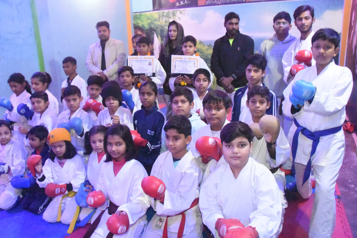 आकांक्षा कराटे क्लासेज एंड स्पोर्ट्स एकेडमीस ऑफ कानपुर के द्वारा खिलाड़ी सम्मान समारोह का आयोजन जरौली स्थित एकेडमी में किया गया । संस्था हेड राज सर ने बताया कि खिलाड़ियों को मुख्य अतिथि जरौली पार्षद श्रीमती रिचा अभय शुक्ला के द्वारा राष्ट्रीय खिलाड़ियों को सम्मानित किया और दो खिलाड़ियों ने फेडरेशन सकियों का ब्लैक बेल्ट सर्टिफिकेट प्राप्त किया। इस मौके पर संस्था के कोच मोहित सिंह अनन्या पाल ने सभी विजेता खिलाड़ियों को बेल्ट पहनकर प्रोन्नत किया। संस्था हेड राज सर ने फेडरेशन सकियो के द्वारा पास शौर्य सिंह और प्रखर उमराव को ब्लैक बेल्ट सकीयो का सर्टिफिकेट देकर प्रोन्नत किया और बाकी सभी खिलाड़ियों को फेडरेशन के द्वारा आगामी प्रतियोगिता के चयन एग्जाम में पास होने पर शुभकामनाएं दी ।इस दौरान राज प्रताप सिंह ने बताया कि काली लगन और मेहनत से ही व्यक्ति में निखार आता है और आपके द्वारा की गई मेहनत एक न एक दिन अवश्य आपकी एक काम आएगी कार्यक्रम के दौरान भारत माता की जय वंदे मातरम के नारे लगाए गए।