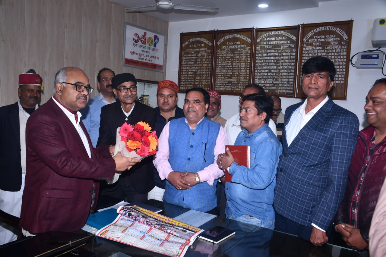 -कानपुर, राज्य कर्मचारी संयुक्त परिषद के जिला अध्यक्ष राजा भरत अवस्थी के नेतृत्व में एक प्रतिनिधिमण्डल ने नव नियुक्त जिलाधिकारी जे पी सिंह को पुष्पगुच्छ व परिषद का कैलेण्डर देकर कलेक्ट्रेट में स्वागत!अभिनंदन व वंदन किया। जिलाधिकारी ने कहा कि सरकार की कल्याणकारी योजनाओं का क्रियान्वयन कर्मचारी ही करते है।उन्होंने परिषद को आश्वस्त किया कि कर्मचारी व शिक्षकों की समस्याओं का तत्काल निराकरण कराया जाएगा।परिषद के प्रतिनिधिमण्डल में प्रमुखरूप से वरिष्ठ उपाध्यक्ष रणधीर सिंह,मन्त्री इं.कोमल सिंह,संप्रेक्षक मंजूरानी कुशवाहा,चेयरमैन साहबसरताज,शिक्षक नेता योगेन्द्र कुमार सिंह,दिलीप सैनी,डॉ.प्रिया आनन्द, कलेक्ट्रेट के अध्यक्ष मुन्नाबाबू सैनी,मन्त्री राजेश श्रीवास्तव,जितेन्द्र भट्ट,प्राविधिक शिक्षा निदेशालय के मन्त्री पारसनाथ,आईटीआई के मनोज झाँ,ग्राम विकास अधिकारी संघ के अध्यक्ष संजय मिश्रा,उ.प्र.ग्रामीण पंचायतीराज सफाई कर्मचारी के अध्यक्ष बृजेश सुवाडोर,बेसिक शिक्षा परिषद कर्मचारी एसोसिएशन के मंडल अध्यक्ष परवेज़ आलम,सिंचाई विभाग के खण्डीय अध्यक्ष मोहम्मद शाहिद,माध्यमिक शिक्षणेत्तर कर्मचारी संघ के गणेश दीक्षित,राज्यकर के ब्रजभार आदि प्रमुख रूप से सम्मिलित रहें।