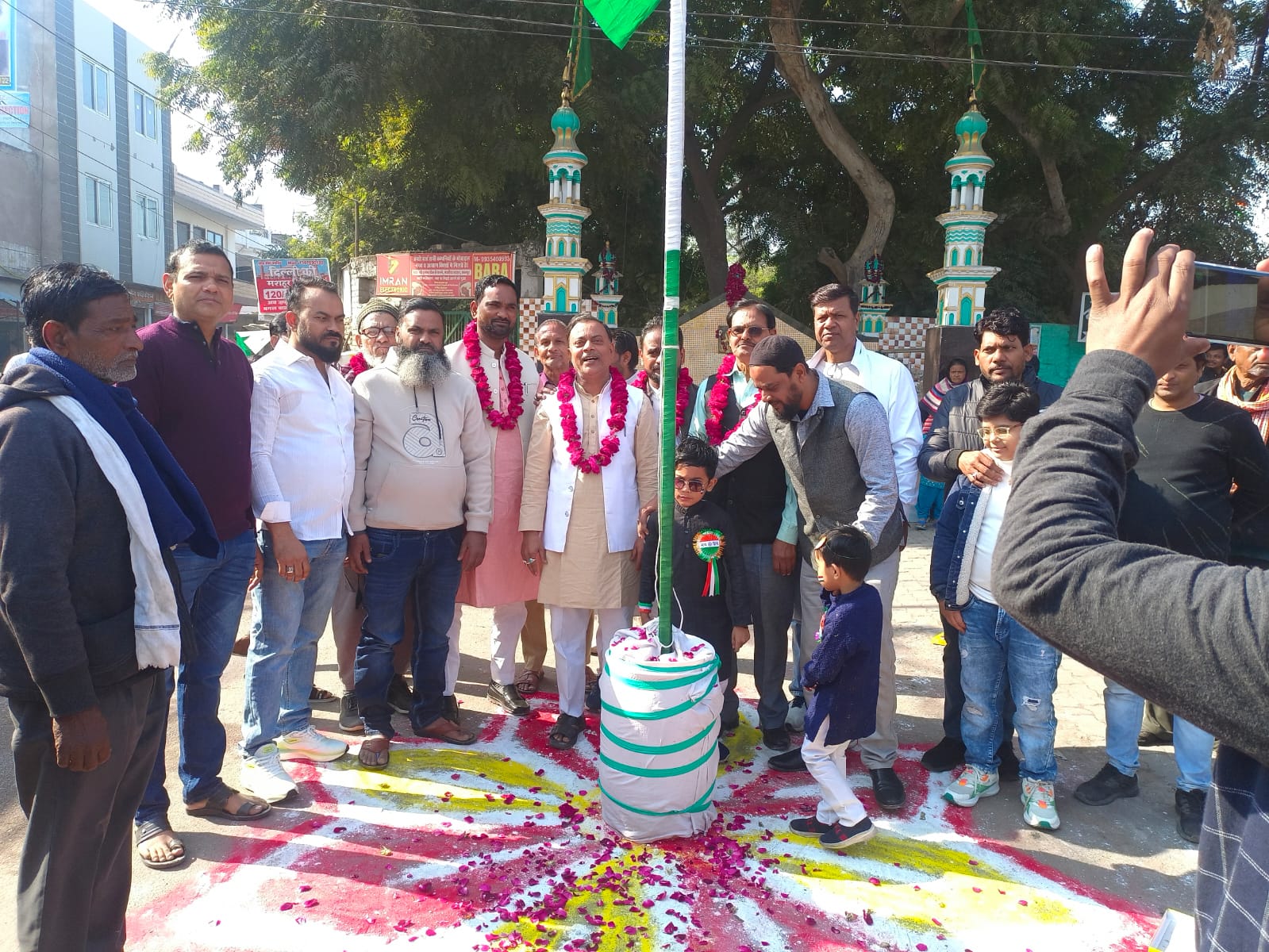 कानपुर, 76 वे गणतंत्र दिवस पर कानपुर नगर अध्यक्ष मोहम्मद उस्मान एवं वार्ड 68 के पार्षद सिराज खान के नेतृत्व में बड़े धूमधाम से गणतंत्र दिवस मनाया गया कार्यक्रम दौरान झंडा रोहण कर राष्ट्रगीत गाकर देश की उन्नति की कामना करते हुए कहां भारत देश के विरोध करने वाले लोगों को ईश्वर से सद्बुद्धि देने की प्रार्थना की साथ ही साथ नन्हे मुन्ने बच्चों को देश के प्रति एकता और अखंडता रखने की बात कही राष्ट्रीय लोक दल नगर अध्यक्ष मोहम्मद उस्मान ने कहा कि समाज में सभी वर्ग के लोग हैं 26 जनवरी गणतंत्र दिवस जिस दिन संविधान लागू हुआ था संविधान में सभी धर्म जात के अधिकारों की बात की गई है केवल एक ही वर्ग की बात नहीं कही गई सभी लोग को संविधान के प्रति रुझान रखने की जरूरत है तभी हमारा देश मजबूत होगा।