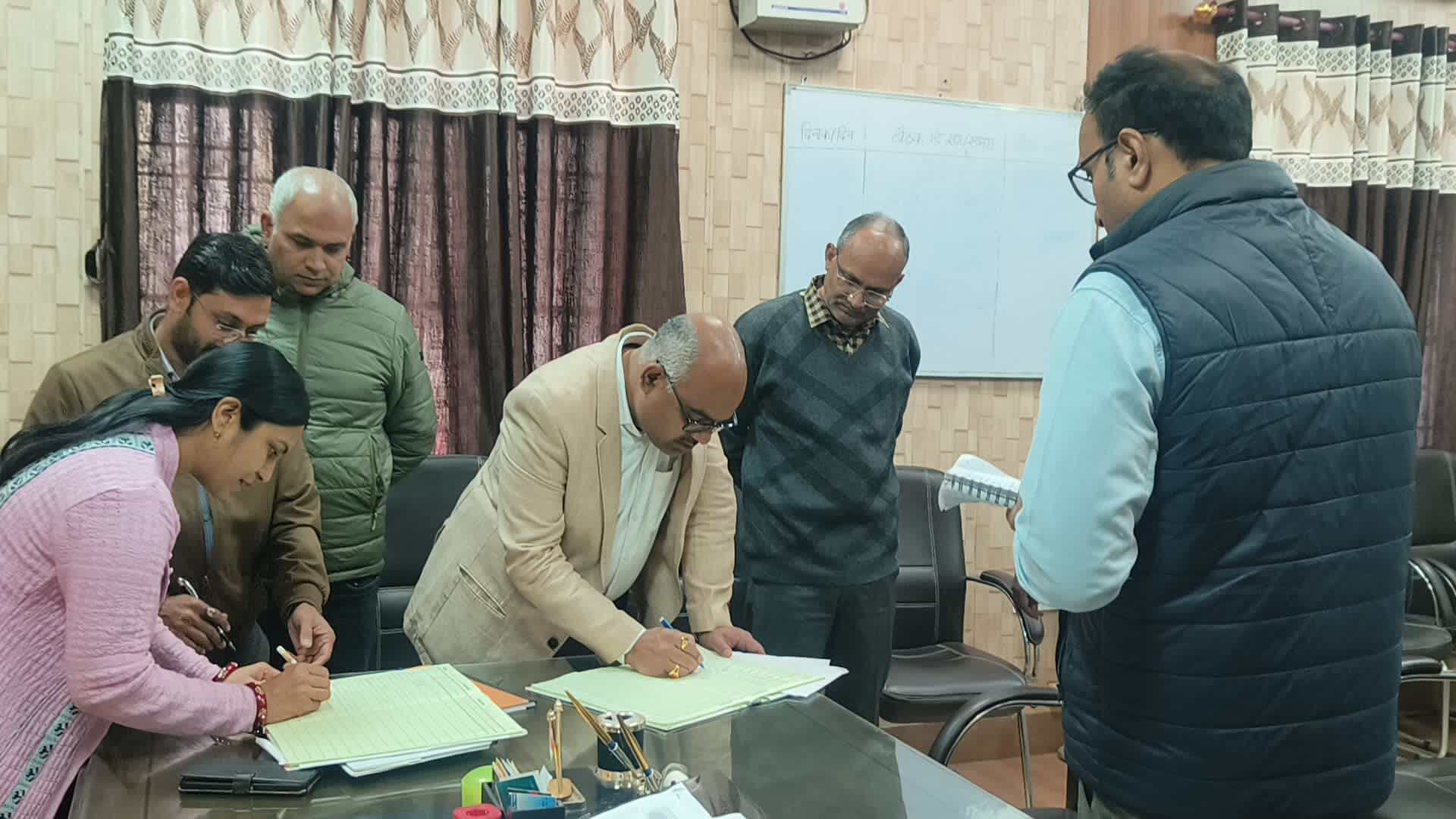 कानपुर, जिलाधिकारी जितेन्द्र प्रताप सिंह द्वारा रामादेवी स्थित मुख्य चिकित्सा अधिकारी कार्यालय का औचक निरीक्षण किया गया। निरीक्षण के दौरान मुख्य चिकित्सा अधिकारी समेत 34 कर्मचारी एवं डॉक्टर अनुपस्थित समस्त अनुपस्थित कर्मचारी एवं डॉक्टर का एक दिन का वेतन रोकने के दिए गए निर्देश । जिलाधिकारी ने कहा कि जो लोग ड्यूटी पर अनुपस्थित पाए गए हैं आगे चलकर कार्रवाई भी की जाएगी स्वास्थ्य विभाग में जनता के साथ हो रही परेशानियों को लेकर जिलाधिकारी काफी सक्रिय नजर आए।