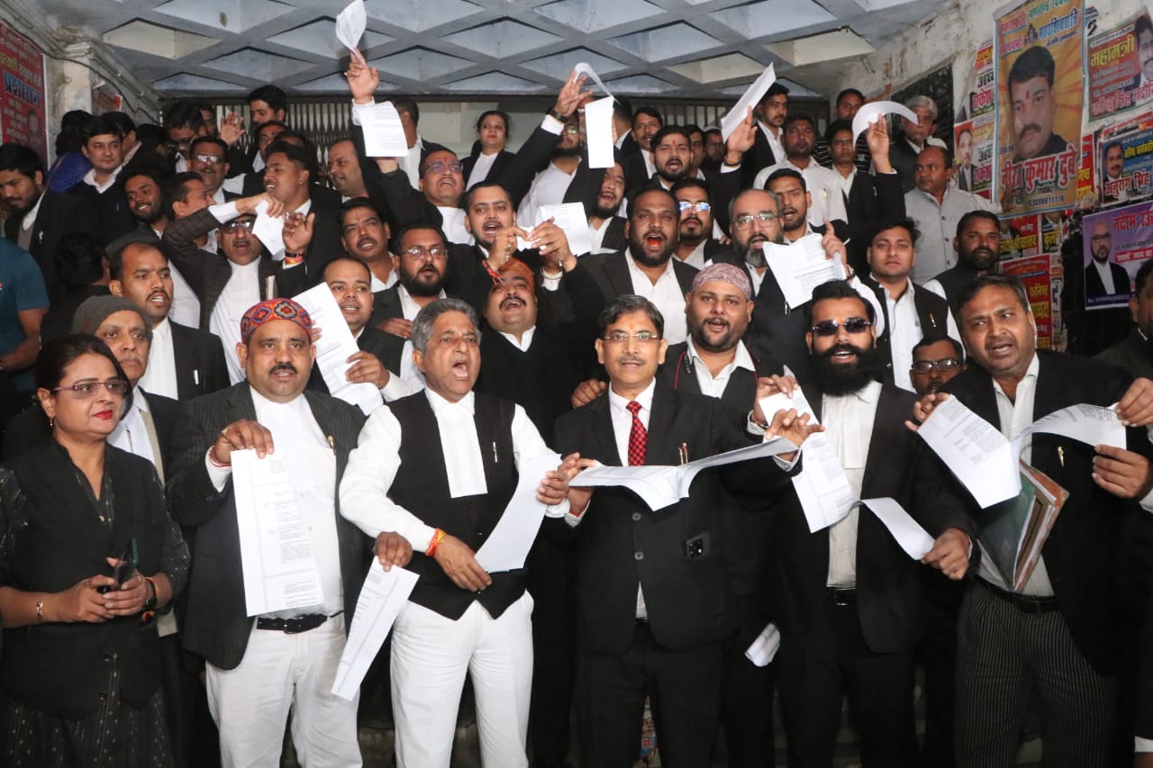 अधिवक्ताओं ने फाड़ी अधिवक्ता संशोधन विधेयक की प्रतियां