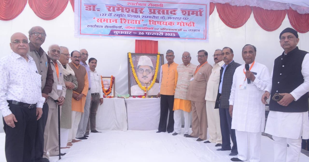 कानपुर, स्वतंत्रता सेनानी डॉ. रामेश्वर प्रसाद शर्मा के 127 वें स्मृति दिवस पर सेनानी उत्तराधिकारियों का किया गया सम्मान।कार्यक्रम की अध्यक्षता कर रहे कानपुर लॉयर्स अध्यक्ष श्याम नारायण सिंह ने दीप प्रज्वलित करते हुए कार्यक्रम का उदघाटन किया। जिसके उपरांत राष्ट्रगान सम्मानिता नारायण द्वारा प्रस्तुत किया गया!मुख्य अतिथि के रूप में राज्य मंत्री प्रतिभा शुक्ला ने बताया कि इस तरह के कार्यक्रमों से बच्चों के भविष्य के निर्माण में अत्यधिक सहायता मिलती है।समाज के हर तबके को उत्थान के लिए ऐसे कार्यक्रम का आयोजन किया जाना चाहिए व पूर्व सांसद अनिल शुक्ल वारसी ने समाज मे समान शिक्षा के महत्व को समझाते हुए बच्चो का प्रोत्साहन किया।पुनीत राज शर्मा (एड०) ने संचालन करते हुए समस्त अतिथियों का सम्मान माला व अंगवस्त्र पहनाकर व बाबा रामेश्वर की शिवलिंग का स्मृति चिंन्ह भेंट करते हुए कहा कि हिंदूस्तान एक ख्वाब था जो स्वतंत्रता सेनानियों द्वारा देखा गया था।ऐसा भारत जिसमे सबको समान शिक्षा,स्वास्थ्य का अधिकार मिले, जिस सपने को साकार करना हमारी जिम्मेदारी है।