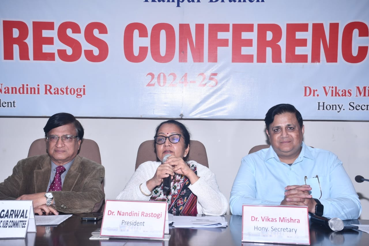 इंडियन मेडिकल एसोसिएशन कानपुर शाखा द्वारा आज दिनांक 28 फरवरी 2025 दिन शुक्रवार को दोपहर 2 बजे “रमजान के पवित्र महीने में उपवास कर रहे मधुमेह, उच्च रक्तचाप और किडनी रोग से पीड़ित रोगियों लिए स्वास्थ्य जागरूकता सलाह देने हेतु एक पत्रकार वार्ता का आयोजन सेवा का मंदिर आई.एम.ए. कार्यालय, 37/7,परेड में किया गया।इस प्रेस कॉन्फ्रेंस को आई.एम.ए कानपुर की अध्यक्ष डॉ.नंदिनी रस्तोगी, डॉ ए.सी.अग्रवाल, चेयरमैन, वैज्ञानिक सब कमेटी,एवं डॉ विकास मिश्रा, सचिव,आई.एम.ए.कानपुर संबोधित किया। रमज़ान उपवास और प्रार्थनाओं का पवित्र महीना है। समाज में मधुमेह और उच्च रक्तचाप के रोगियों की संख्या बहुत अधिक है और चूंकि इस महीने के दौरान उपवास अनिवार्य है, इसलिए हमें अपने मधुमेह और रक्तचाप को अच्छी तरह से नियंत्रण में रखने के लिए कुछ सावधानियां बरतनी चाहिए।जो मरीज़ केवल आहार और व्यायाम पर हैं, उन्हें पर्याप्त मात्रा में तरल पदार्थ के सेवन के साथ इसे जारी रखा जा सकता है। जो मरीज़ सल्फोनिल्यूरिया जैसी रक्त शर्करा कम करने वाली दवाएँ ले रहे हैं, उन्हें सख्त चिकित्सकीय मार्गदर्शन में दवाएँ लेनी चाहिए, अपनी सुबह की खुराक कम करें और मुख्य दवाएँ इफ्तार के समय लें।मिश्रण वाले इंसुलिन की बजाय लंबे समय तक काम करने वाले इंसुलिन या अल्ट्रा शॉर्ट एक्टिंग इंसुलिन को प्राथमिकता दी जानी चाहिए।भोजन में साबुत अनाज जैसे कि साबुत अनाज की रोटी, ओट्स, क्वोन्हा, ब्राउन चावल शामिल होना चाहिए।