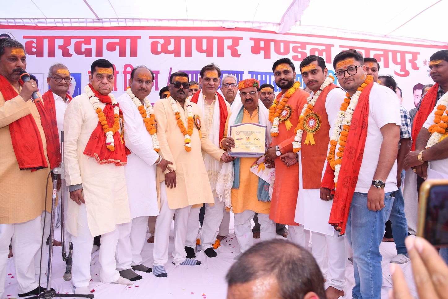 कानपुर।बारदाना व्यापार मंडल द्वारा नव मनोनीत कमेटी का शपथ ग्रहण समारोह हुआ शपथ ग्रहण समारोह उत्तर प्रदेश प्रदेश उद्योग मंडल अध्यक्ष मुकुंद मिश्रा ने पदाधिकारी को शपथ दिलाई और प्रकश पाल ने सभी नवनिर्वाचित पदाधिकारी को अपना आशीर्वाद प्रदान किया और कार्यक्रम में भव्य कवि सम्मेलन का भी आयोजन किया गया सदा उसके बाद प्रभु की झांकियां का भव्य चित्रण किया गया ।जिसमें इस कार्यक्रम में कानपुर महानगर के अनेक व्यापारिक संगठनों के अध्यक्ष महामंत्री उपस्थित रहे कार्यक्रम में विधायक गोविंद नगर सुरेंद्र मैथानी, विधायक सलिल बिश्नोई, पूर्व विधायक रघुनंदन भदौरिया, सुरेश अवस्थी, क्षेत्रीय व्यापार संयोजक विनोद गुप्ता व तमाम गणमान्य नागरिक उपस्थित रहे अध्यक्ष महेंद्र गुप्ता, संतोष शर्मा, राम कृपाल जयसवाल सीताराम गुप्ता, कन्हैया लाल गुप्ता, सक्षम गुप्ता, राकेश साहू, विराट गुप्ता उपस्थित रहे।