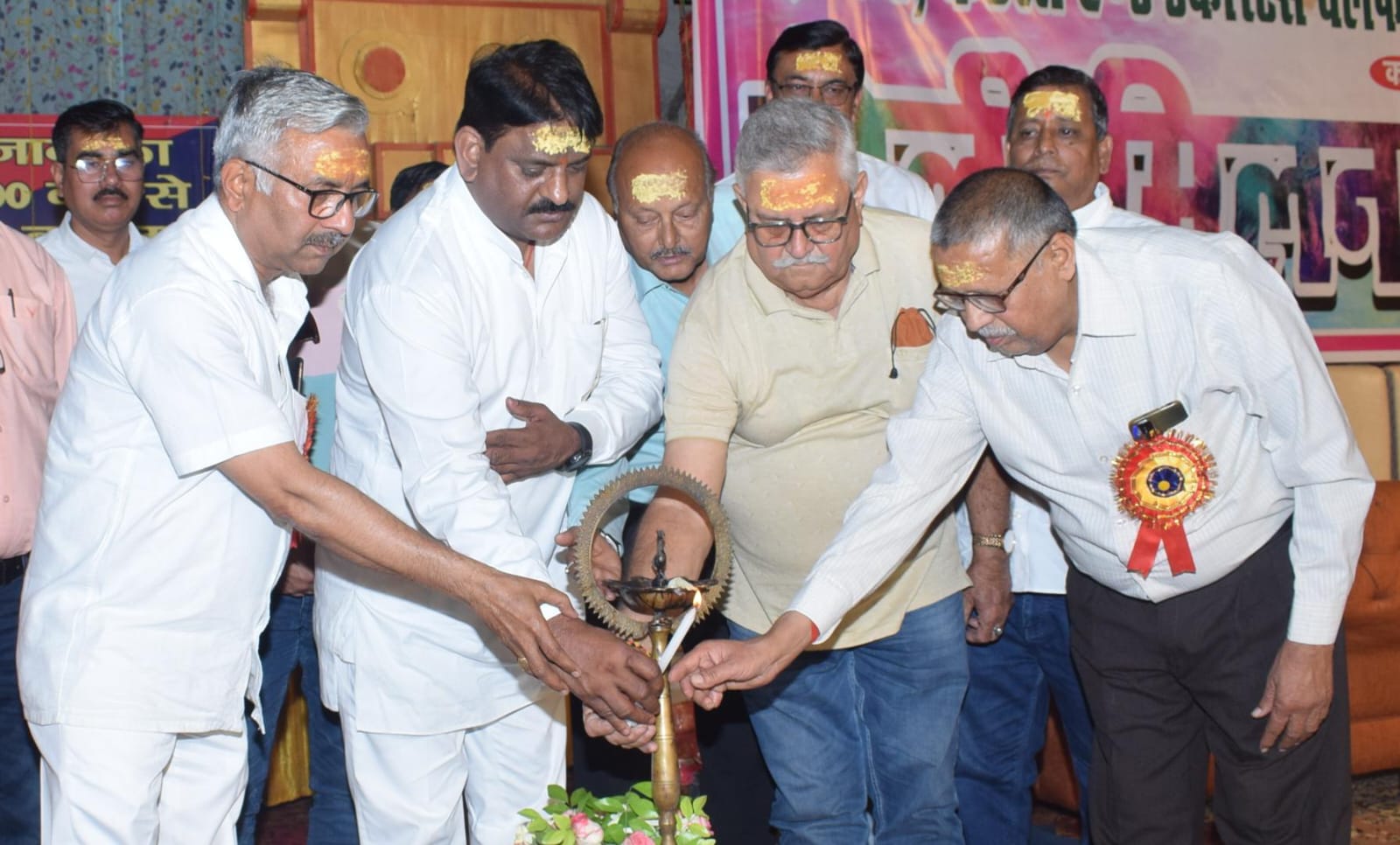 श्याम नगर स्थित वाटिका में हिंदू सनातनियों के राष्ट्रीय पर्व होली के समापन के उपरांत उ० प्र० टेंट एंड डेकोरेटर्स वेलफेयर एसोसिएशन रजिस्टर्ड के अंतर्गत कानपुर शामियाना फर्नीचर संगठन ने पारिवारिक होली मिलन समारोह एवं व्यापारी सम्मान समारोह का भव्य आयोजन किया। वही मुख्य अतिथि के रूप में प्रदेश अध्यक्ष विजय कुमार का आगमन हुआ।शामियाना फर्नीचर संगठन के पदाधिकारीओ ने बुके देकर माला,पगड़ी,पटका पहनाकर जोरदार स्वागत/सम्मान किया। तत्पश्चात मुख्य अतिथि द्वारा दीप प्रज्वलित के पश्चात पदाधिकारीओ ने उपस्थित हुए अतिथियों का स्वागत व सम्मान किया। कार्यक्रम में सर्वप्रथम गणेश वंदना के बाद बच्चों द्वारा सांस्कृतिक कार्यक्रम में एक से बढ़कर एक प्रस्तुति दी गई। एवं फूलों की होली समिति के पदाधिकारीओ के परिवारिजनों द्वारा खेली गई। अंत में सैकड़ो व्यापारियों का सम्मान किया गया। कार्यक्रम में प्रमुख रूप से अध्यक्ष जगदीश गुप्ता,महामंत्री राकेश कुमार तिवारी,कोषाध्यक्ष चंद्र किशोर शुक्ला,महेंद्र सिंह राजपूत,पुरुषोत्तम मिश्रा,नितेश मिश्रा,सुशील भदोरिया,संतोष भदोरिया,आकाश जायसवाल,राजू यादव सहित समिति के समस्त पदाधिकारी व व्यापारी उपस्थित रहे।