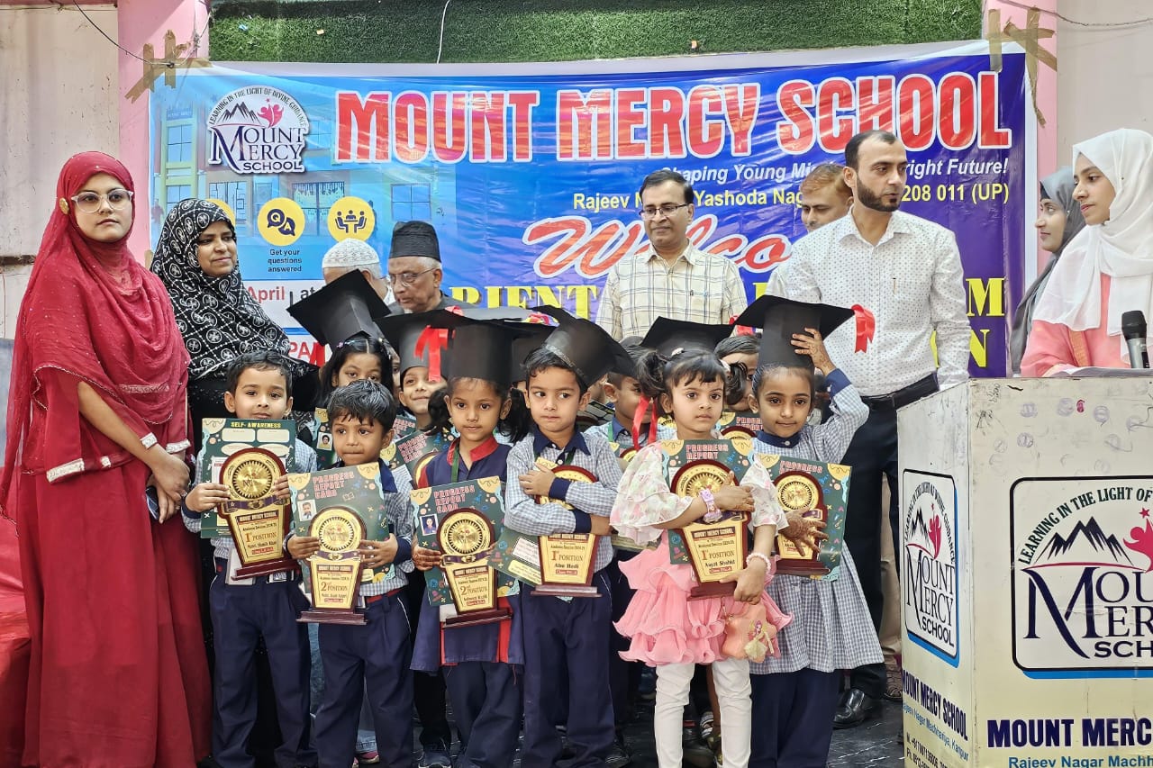 कानपुर, परीक्षा का परिणाम आते ही नन्हे मुन्ने बच्चों को चेहरे खिले माउंट मर्सी स्कूल राजीव नगर यशोदा नगर कानपुर में कक्षा पी जी लेकर कक्षा 8 तक के बच्चों की परीक्षा के परिणाम आते ही बच्चों में खुशी की लहर उमड पड़ी! माउंट मर्सी स्कूल का परिणाम एवं रैंक होल्डर की हिंदी पद धारकों के लिए पुरस्कार वितरण समारोह आयोजित किया गया कार्यक्रम के दौरान सभी बच्चों ने अपनी अपनी प्रतिभाओं का पूर जोर प्रदर्शन किया राष्ट्रगीत गाकर कार्यक्रम का शुभारंभ किया गया अनेक देशभक्ति के गीत गाकर उपस्थित दर्शकों का मन मोह लिया कार्यक्रम के अति सर्वश्रेष्ठ अभिभावक को पुरस्कार देकर सम्मानित किया गया समझ में अभिभावक समेत मुख्य अतिथि डॉ रोहित अग्रवाल बोल रोड विशेषज्ञ डॉक्टर गयादीन निजाम अहमद आदि मौजूद रहे समारोह का संचालन स्कूल के प्रधानाचार्य था कबीर खान ने किया!