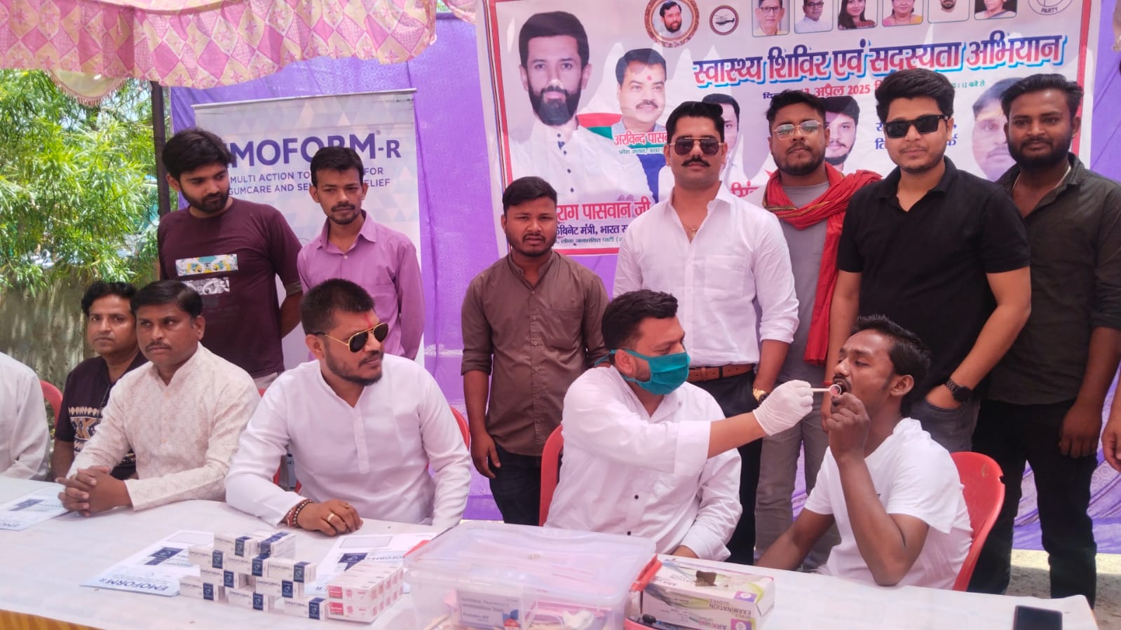 लोकजन शक्ति पार्टी रामविलास के द्वारा नगर के बर्रा 8 स्थित तिकुनिया पार्क में सदस्यता अभियान चलाया गया जिसमें हजारों लोगों ने सदस्यता ग्रहण की। आयोजक जिलाध्यक्ष विपिन यादव ने बताया कि सदस्यता अभियान के साथ में आम जनमानस को समर्पित स्वास्थ्य कैम्प का भी आयोजन किया जिसमें दात चर्म रोग हड्डी आंखो सहित अन्य समस्त बीमारियों की निशुल्क दवाएं जांच के उपरान्त वितरित की गई। कैम्प में आई स्थानीय महिला सुशीला ने बताया कि ऐसे आयोजन से निर्धन निर्बल असहाय समाज का काफी उत्थान हुआ है। कैम्प में जिलाध्यक्ष विपिन यादव ने जनसमस्याओं को सुनते हुए जल्द समाधान कराने का विश्वास दिलाया। कार्यक्रम के दौरान बड़ी संख्या में मौजूद पुदाधिकारियो को संबोधित करते हुए जिलाध्यक्ष श्री यादव ने कहा की पार्टी के निर्देशानुसार नगर के समस्त कार्यकर्ताओं को प्रत्येक वार्ड स्तर पर सदस्यता अभियान चलाने तथा आम जनमानस की समस्याओं को सुन उसका समाधान कराने की बात कही गई। आयोजन के दौरान देवराज सिंह चंदेल को विधि प्रकोष्ठ अध्यक्ष का नियुक्ति पत्र जिलाध्यक्ष विपिन यादव ने सौंप उन्हें संगठन की जिम्मेदारी सौंपी। मेडिकल कैंप में आए मरीजों एवं क्षेत्रीय नागरिकों के लिए शर्बत वितरित किया गया। कार्यक्रम के दौरान पदाधिकारियों ने पार्टी समर्थित नारे लगाए। इस मौके पर मुख्य रूप से शुभम तिवारी संदीप सोनी विशाल द्विवेदी आर्यन त्रिपाठी देवेन्द्र सिंह शैलेन्द्र सिंह केशु पासवान सहित काफी संख्या में क्षेत्रीय मौजूद रहे।