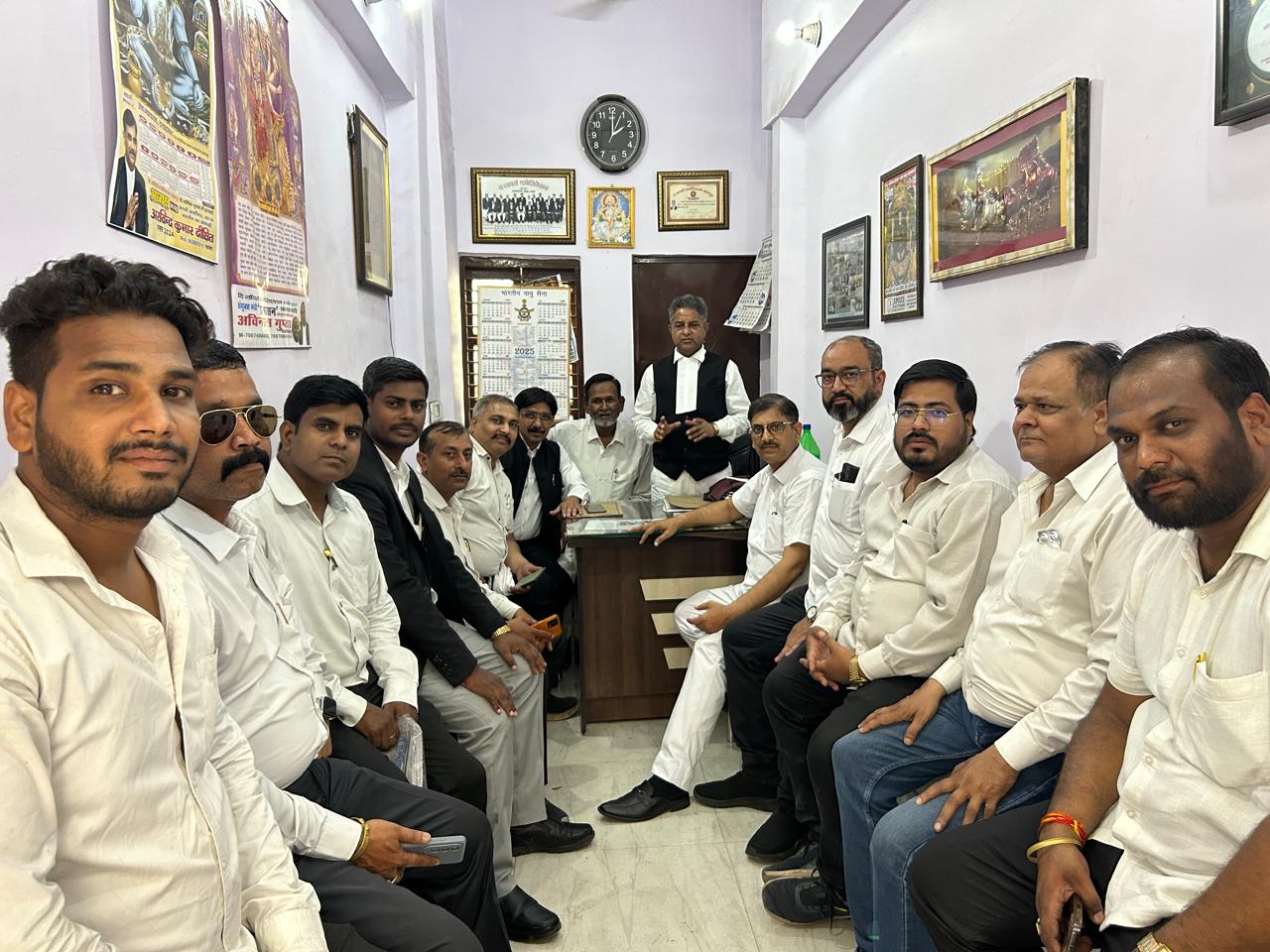 कानपुर ,अधिवक्ता कल्याण संघर्ष समिति की समित कार्यालय अधिवक्ता पेंशन और स्वास्थ्य बीमा पर हुई बैठक में बोलते हुए संघर्ष समित संयोजक पंडित रवीन्द्र शर्मा पूर्व अध्यक्ष लॉयर्स एसोसिएशन ने बताया कि स्वाधीनता से लेकर आज तक न्यायालय के अधिकारी अधिवक्ताओं की राष्ट्रीय स्तर पर कोई भी सामाजिक सुरक्षा नही है जिसकी वजह से 80 से 85 वर्ष तक अधिवक्ताओ को बीमारी में भी जीविकोपार्जन और इलाज हेतु कार्य करना पड़ता है