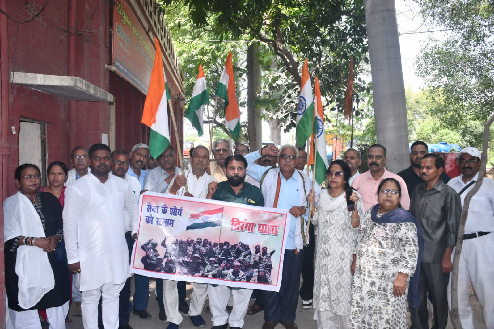 शहीदो के शौर्य एंव उनका मनोबल बढाने हेतु तिरंगा यात्रा यूनियन कार्यालय से मोतीझील तक निकाली