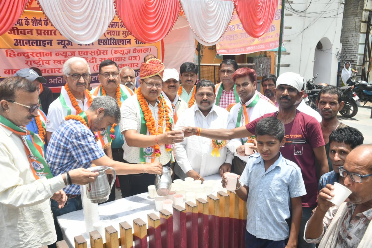 कार्य चल रहा है उसके लिए बहुत-बहुत सभी को धन्यवाद देता हूं ऐसे ही सामाजिक कार्य करने की सभी को जरूरत है जहां कोई जरूरत पड़ती है उसके लिए मैं हमेशा सहयोगी संस्थाओं के साथ खड़ा हुआ हूं सहयोगी संस्थाएं इस प्रकार रही। 9 जीवन प्रसार सेवा संस्थान (नशा मुक्ति केंद्र) ऑनलाइन न्यूज़ चैनल एसोसिएशन,हिंदुस्तान न्यूज़ एक्सप्रेस (न्यूज़ चैनल)राष्ट्रीय स्वरूप (हिंदी दैनिक समाचार पत्र), बावन अवतार टाइम्स (हिंदी समाचार पत्र ) सहयोग संस्थाओं ने जल ही जीवन पर शरबत वितरण किया। भारतीय ऋतु चक्र के हिसाब से जेठ से आषाढ़ यानी कि अप्रैल से जून का मौसम ग्रीष्म ऋतु का होता है जेठ आते ही गर्मी अपने शबाब पर होती है जेठ की दोपहरिया बहुत ज्यादा तपती है पानी बचाने का सबक भी यह मौसम देता है इस मास में जल के दान को पुण्य माना गया है बीमारी से बचने लिए इस मौसम में बाहर कम निकलने की हिदायत दी जाती है। इससे पूर्व मुख्य न्यायाधीश का बैच, पगड़ी श्याम बाबा की फोटो देकर सम्मानित किया गया इसके साथ ही साथ आये अतिथियों को भी माल्यार्पण कर सम्मानित किया गया | इस मौके पर मोहनराम चांदनी, संपादक हिंदी दैनिक राष्ट्रीय स्वरूप समाचार पत्र,पंडित दिनेश चंद्र शुक्ला, राजेंद्र भक्तानी,राजेश तिवारी, राजेश कश्यप,धर्मेंद्र कश्यप,(एडवोकेट)अंकुर गुप्ता,पंकज त्रिवेदी सीनियर रिपोर्टर,नौशाद, राजकुमार भक्तानी,जय तिवारी, प्रदीप सचान, राजेंद्र भक्तानी,रुपेश अग्निहोत्री, जितेंद्र गौतम, सुनील सिंह, हफीज खान, (फोटो जर्नलिस्ट) राजन सविता, संतोष यादव,अमित गुप्ता,रमजान अली,अमरीश त्रिपाठी,जीतू पांडे,राजीव अवस्थी,आदि लोग रहे।