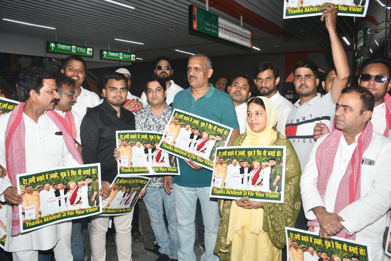 समाजवादी पार्टी विधायक अमिताभ बाजपेई, नसीम सोलंकी, मोहम्मद हसन रूमी ने पार्षद साथियों के साथ कानपुर मेट्रो की यात्रा की एवं राष्ट्रीय अध्यक्ष अखिलेश यादव को धन्यवाद किया। विधायकों ने कहा कि राष्ट्रीय अध्यक्ष समाजवादी पार्टी के पूर्व मुख्यमंत्री अखिलेश यादव द्वारा समाजवादी सरकार में कार्यक्रम के दौरान कानपुर मेट्रो के कार्यों का श्री गणेश किया गया यह समाजवादी पार्टी के किए गए कार्यों को भाजपा सरकार अपना काम बात कर जनता को भ्रम में करे हुए इसलिए समाजवादी पार्टी के सभी विधायक और कार्यकर्ताओं ने मेट्रो ट्रेन से नवीन मार्केट से अंडरग्राउंड घंटाघर घंटाघर से रावतपुर रावतपुर से पुणे वापस नवीन मार्केट पर सफर करके अखिलेश यादव को धन्यवाद किया ।साथ में नीरज सिंह, पार्षद मो. सारिया, पार्षद रजत बाजपेई, फैजान रहमान, मोहम्मद अली, जावेद जमील, आफताब आलम भोलू, विकास कनौजिया आकाश सिंह, सुरभित जायसवाल, चंकी गुप्ता, फखर आलम, प्रशांत जायसवाल, पुण्य जैन, बाबी एहसास, शारिक सिद्दीकी आदि मौजूद रहे।