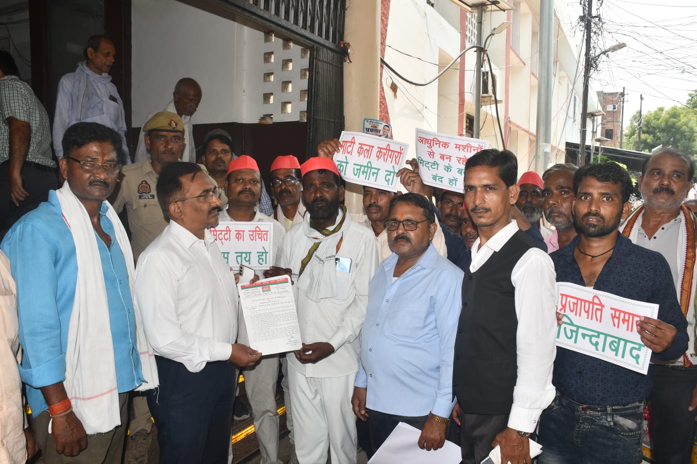 शहर व ग्रामीण क्षेत्रों में उचित रेट पर मिट्टी मुहैया करायी जाये ताकि मिट्टी के नाम पर हो रहे धन उत्पीणन बन्द हो सकें।ज्ञापन देने वालों में से प्रमुख रूप से दिलीप प्रजापति, ओम प्रकाश प्रजापति, संजय प्रजापति, राजकुमार प्रजापति, वीरेन्द्र प्रजापति, मंगली प्रसाद प्रजापति, छोटेलाल प्रजापति, रामू प्रजापति, बंटूलाल प्रजापति, रंजीत प्रजापति, बबलू प्रजापति, गौरी शंकर प्रजापति, मनोज प्रजापति, गंगाराम प्रजापति, प्रदीप प्रजापति, सूरज प्रजापति, मोहन प्रजापति, राहुल प्रजापति, सोनू प्रजापति, पप्पू प्रजापति, राम गोपाल प्रजापति, मनीष राजपूत, ज्ञानू श्रीवास्तव, कपूर सविता, संतोष गौतम, महेशचन्द्र नागर आदि लोग प्रमुख रूप से उपस्थित रहे।