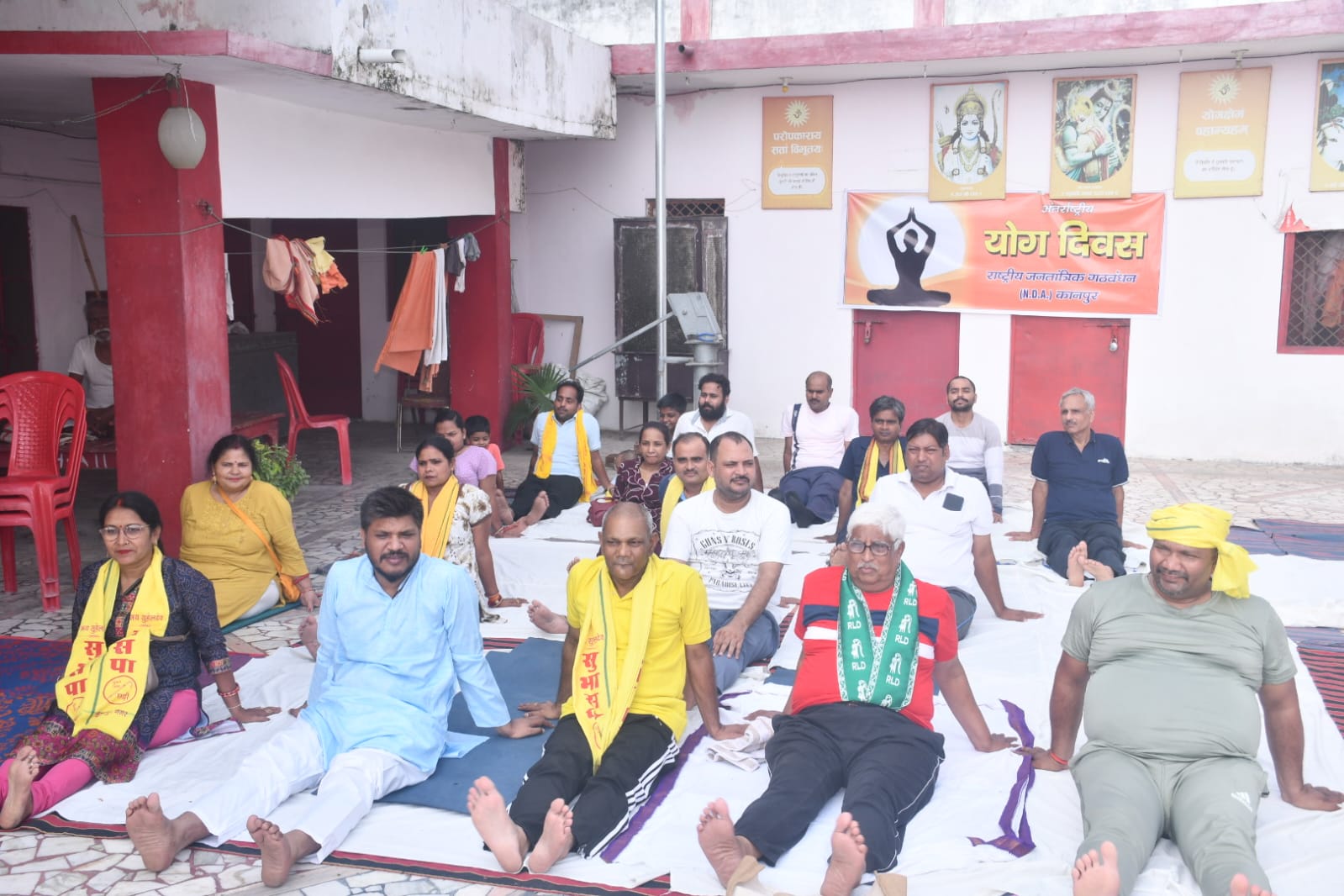 अंतर्राष्ट्रीय योग दिवस सहयोगी दलों द्वारा हसानंद स्वामी आश्रम गुप्तार घाट में मनाया