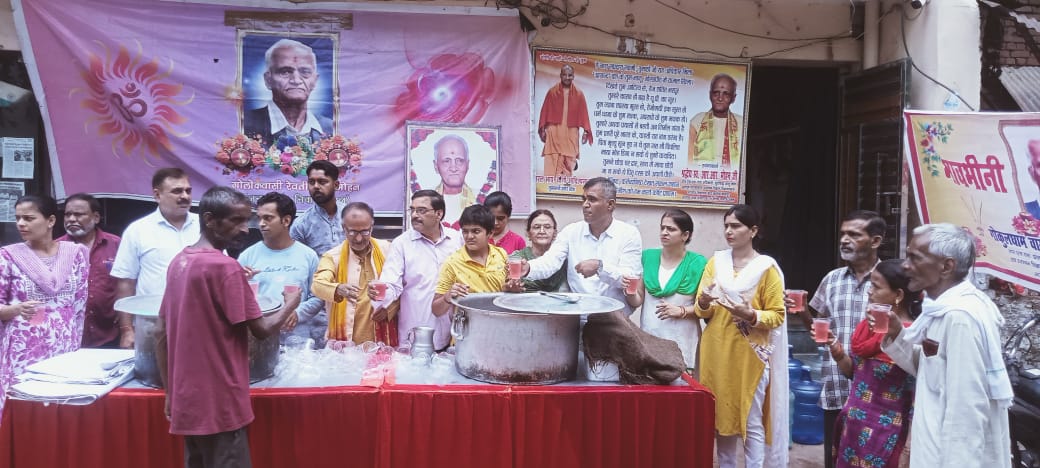 भीषण गर्मी उमस के मौसम में सूर्य भगवान के प्रकोप के कारण शरीर में पानी की कमी को रोकने के लिए शीतल पर पदार्थ शरबत एवं लस्सी का वितरण आरोग्यधाम वालटोली में सड़क पर चल रहा है रागिरो रिक्शा टेंपो बाइक चालकों के अलावा वालटोली थाने के पुलिस कर्मियों को दिनभर वितरित किया गया इस अवसर पर वरिष्ठ होम्योपैथिक फिजिशियन डॉक्टर हेमंत मोहन डॉक्टर आरती मोहन उमा शर्मा रमा शर्मा समीर शुक्ला विट्ठल मोहन आर एन खन्ना श्री कृष्णा दीक्षित एस डी मिश्रा एडवोकेट रामकिशन कान्हा शर्मा एनिमा मोहन श्रुति शर्मा पूजा सिंह डॉ अतुल मिश्रा श्री ओम द्विवेदी समेत अनेकों लोग उपस्थित रहे।