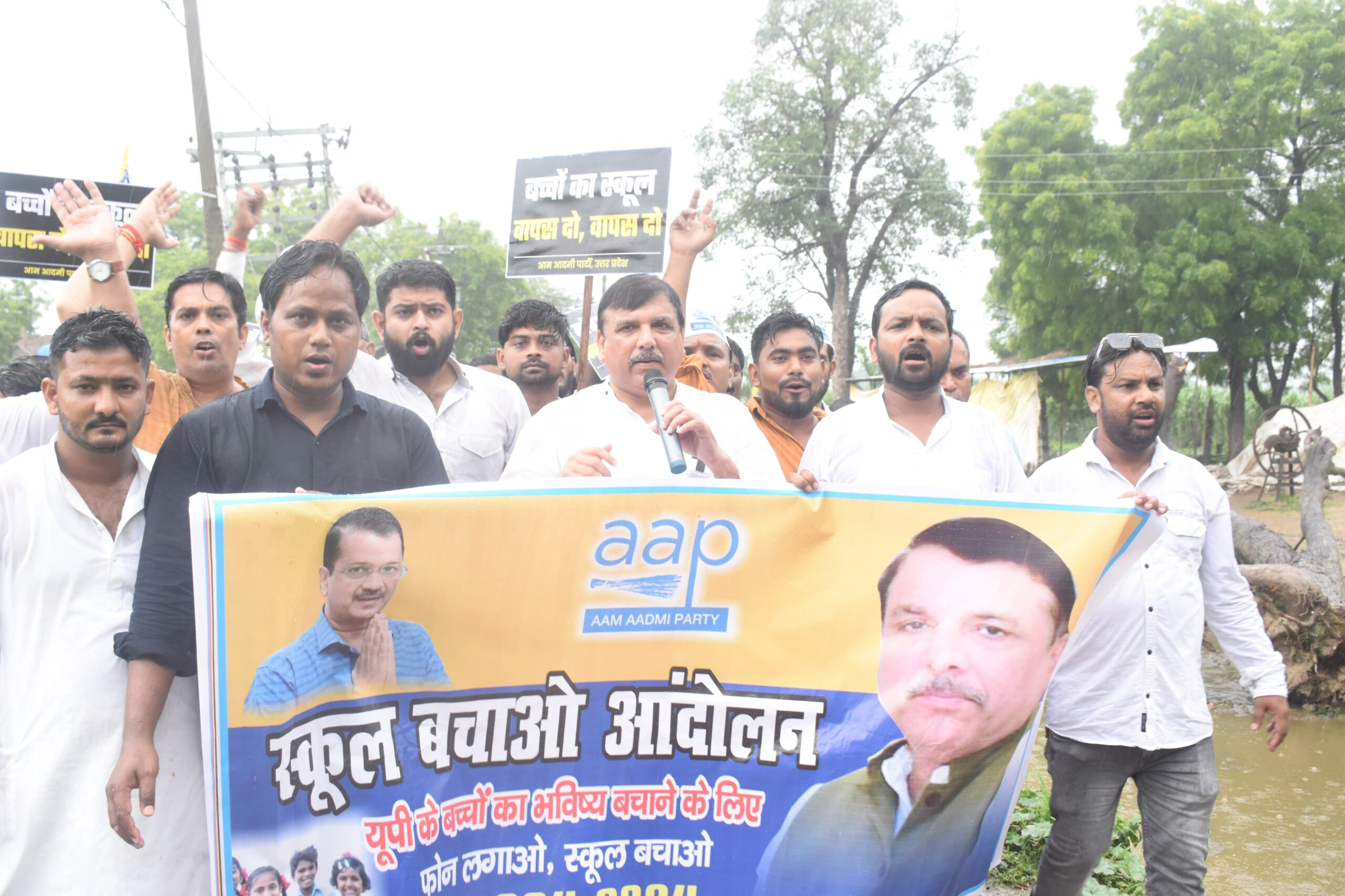 उत्तर प्रदेश में सरकारी स्कूलों को बंद किए जाने के खिलाफ आम आदमी पार्टी ने रविवार को विरोध प्रदर्शन तेज करते हुए आप प्रदेश प्रभारी व सांसद संजय सिंह के नेतृत्व में लक्ष्मणपुर गांव स्थित प्राथमिक विद्यालय, नरवल का दौरा किया। उन्होंने बच्चों और अभिभावकों से मिलकर उनकी समस्याएं सुनीं। सांसद संजय सिंह ने कहा कि आम आदमी पार्टी राज्य में एक भी स्कूल बंद नहीं होने देगी। सरकार को जनता और पार्टी के दबाव में आकर स्कूल बंद करने की नीति में बदलाव करना पड़ा है । अब 1 किमी से अधिक दूरी और 50 से कम छात्रों वाले स्कूलों को ही मर्ज किया जाएगा। उन्होंने कहा, “यह आंशिक जीत है, लेकिन जब तक सभी स्कूलों को बंद करने की योजना पूरी तरह रद्द नहीं होती, आंदोलन जारी रहेगा।”उन्होंने सवाल उठाया कि “शराब की दुकानें 300 मीटर पर खुल सकती हैं, लेकिन स्कूल के लिए 3 किलोमीटर की बाध्यता पर क्यों नही ” संजय सिंह ने कार्यकर्ताओं से अपील की कि वे बंद स्कूलों का दौरा करें और पुनः खुलवाने की प्रक्रिया सुनिश्चित करें। इस दौरान सांसद संजय सिंह ने पहलगाम हादसे में शहीद हुए शुभम द्विवेदी के महाराजपुर स्थित घर जाकर उनके परिजनों से मुलाकात की। उन्होंने बताया कि शुभम को शहीद का दर्जा देने की मांग संसद में रखी जा चुकी है और आम आदमी पार्टी इस दुःख की घड़ी में उनके परिवार के साथ है।
