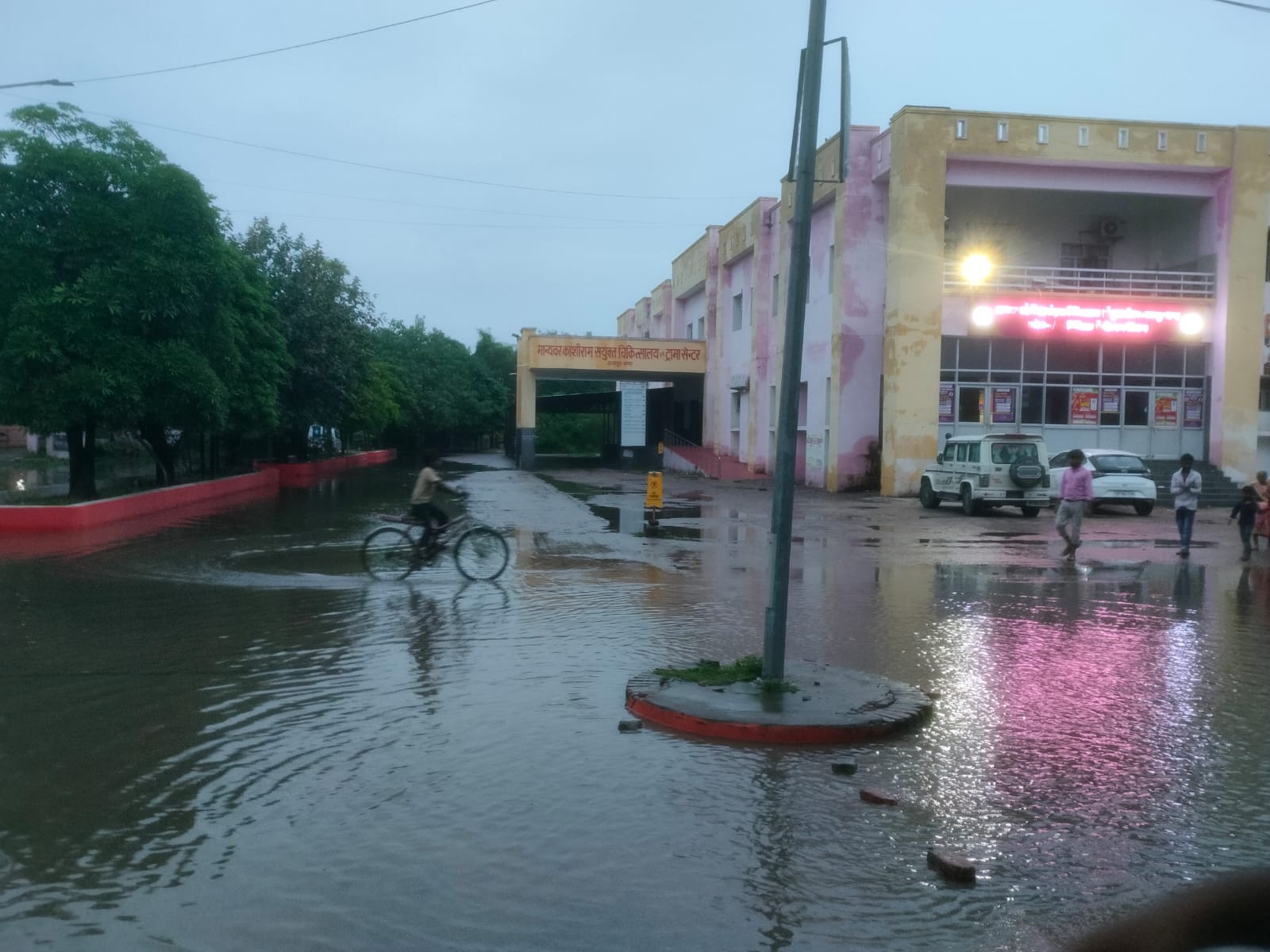 “बारिश में अस्पताल बना तालाब: काशीराम हॉस्पिटल में जलभराव से मरीज और तीमारदार बेहाल