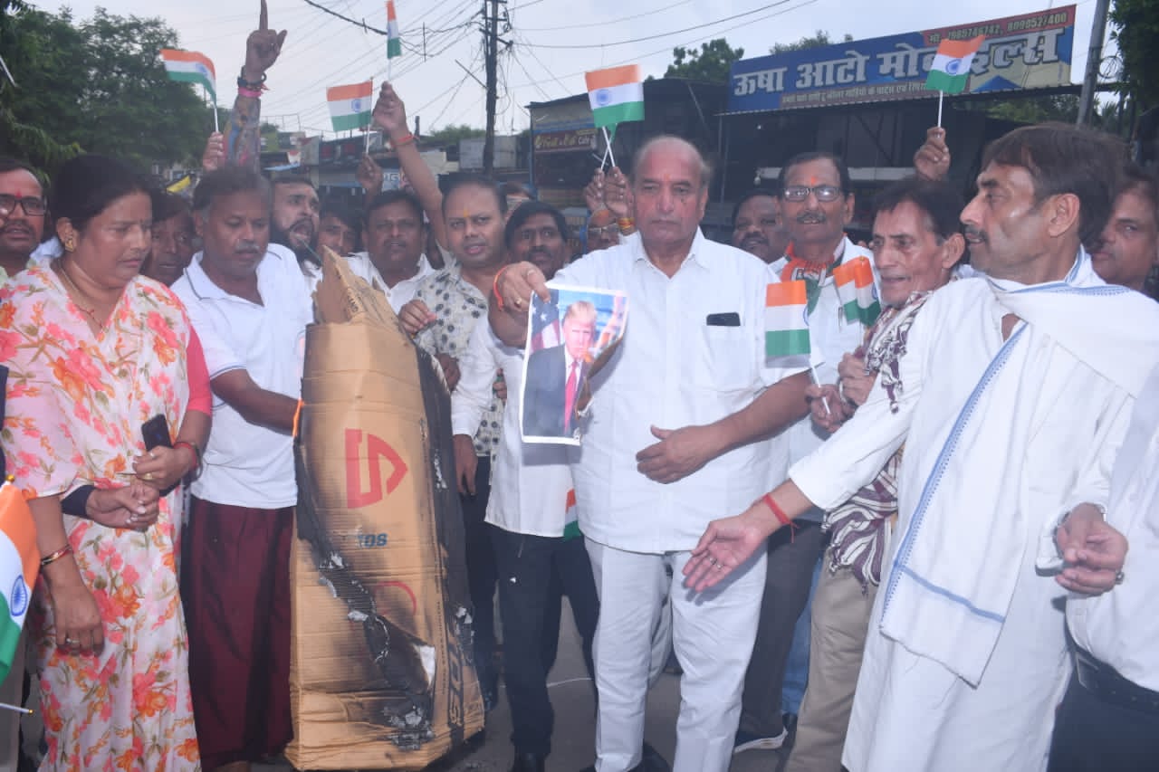 कांग्रेस जनों ने डॉनल्ड ट्रंप का पुतला फूंका और चित्र जलाए/लगाए भारत माता की जय,डॉनल्ड ट्रंप मुर्दाबाद के नारे