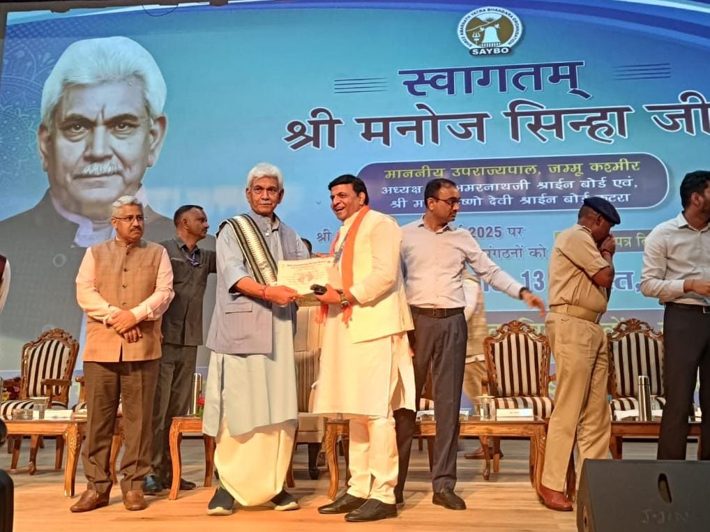 उत्कृष्ट सेवाओं के कारण जम्मू कश्मीर राज्यपाल मनोज सिंहा ने किया सम्मानित। अध्यक्ष रत्नेश वर्मा शीलू